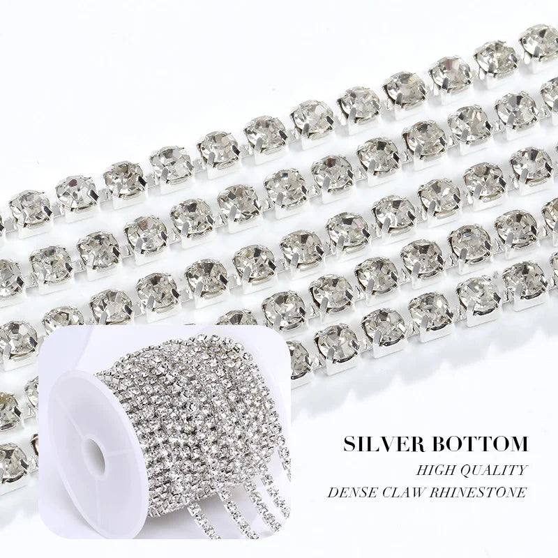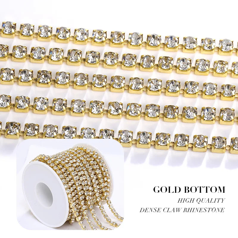 2/5Yard Glass Crystal Rhinestone Cup Chain SS6 SS8 Glue-On Strass Nail Chain Sew-On Rhinestones for Clothes Trim DIY Accessories