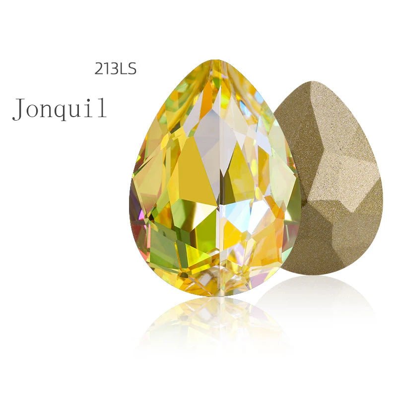 Lemon Shape Flatback Sew on Rhinestone DIY Crafts Glass Crystal Strass With Copper Claws Clothes Decorations