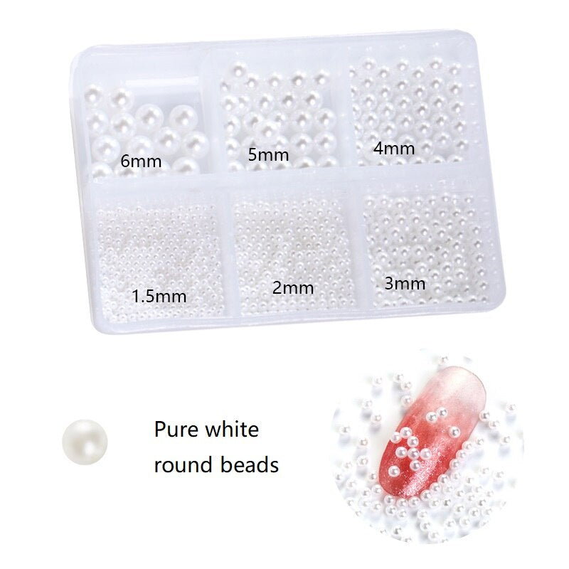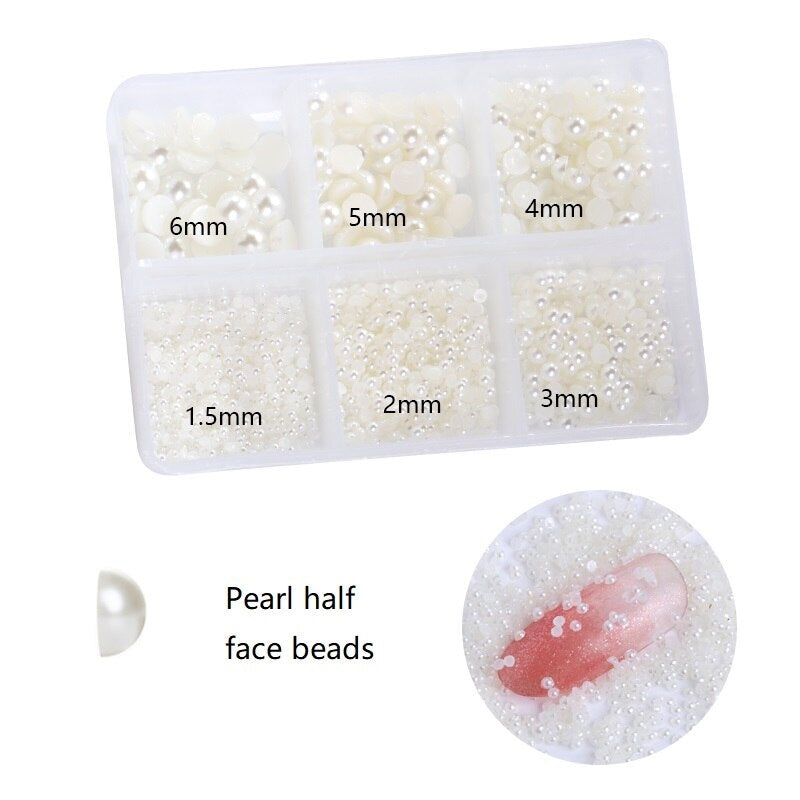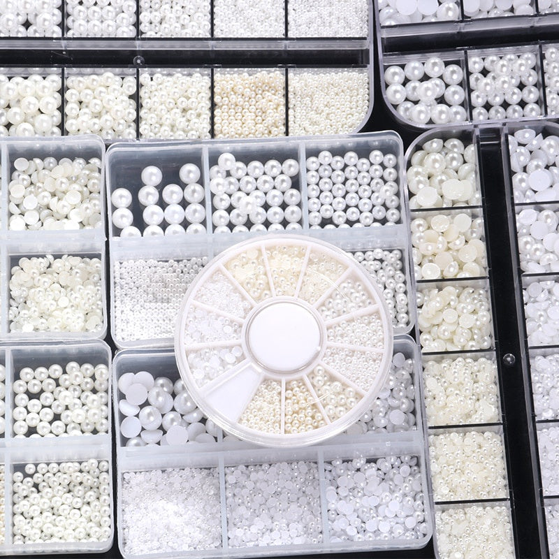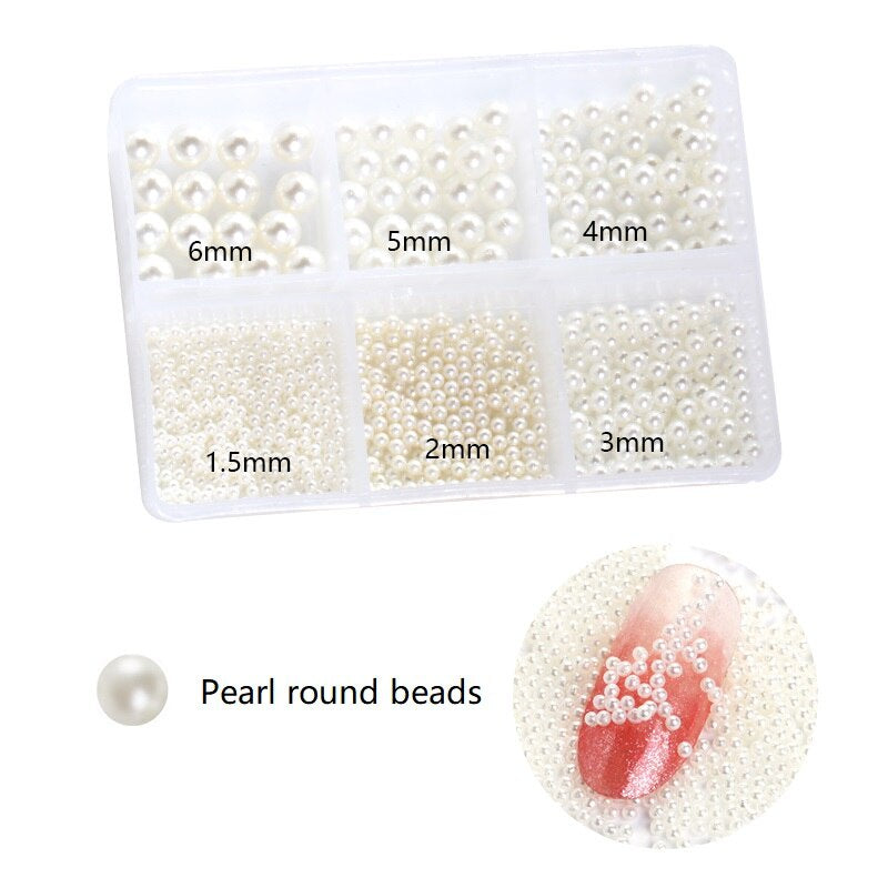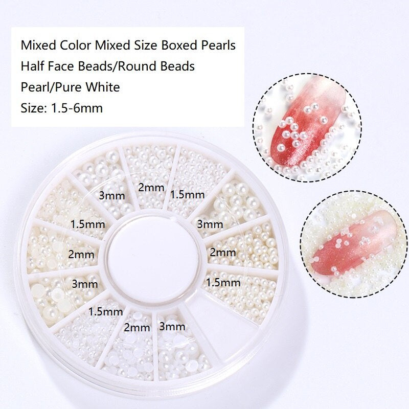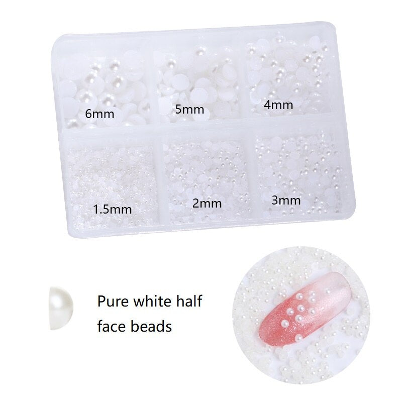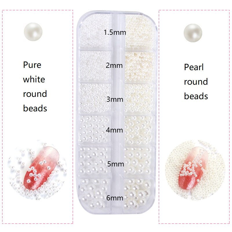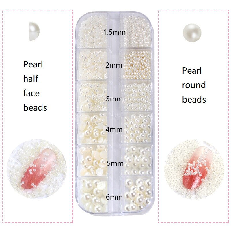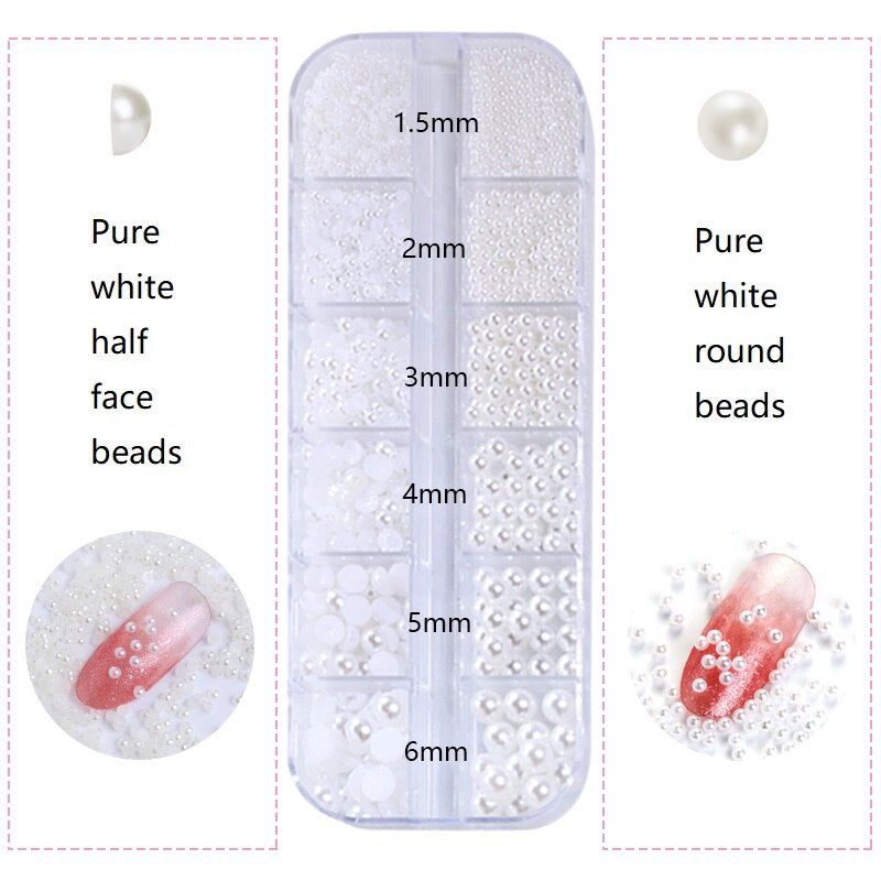 1.5-6mm Round/Half Pearl Beads 12Girds Box Luxury ABS White Heart Pearl Jewelry Nail Pearls Korean Nail Parts Japanese Nail Art,kuku