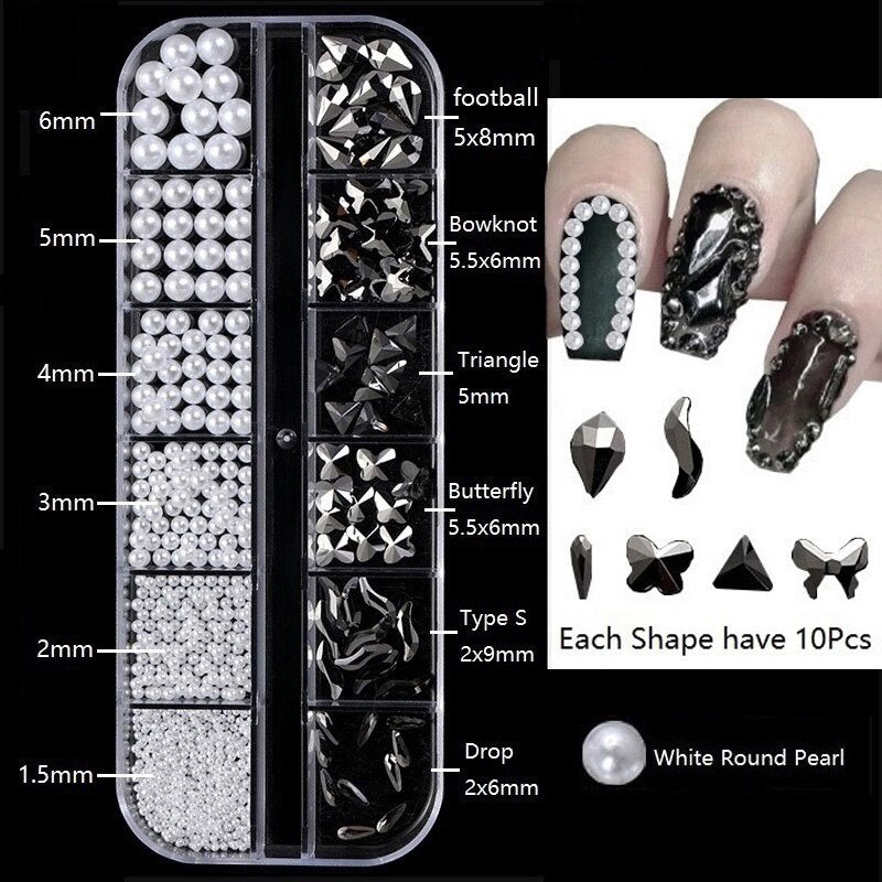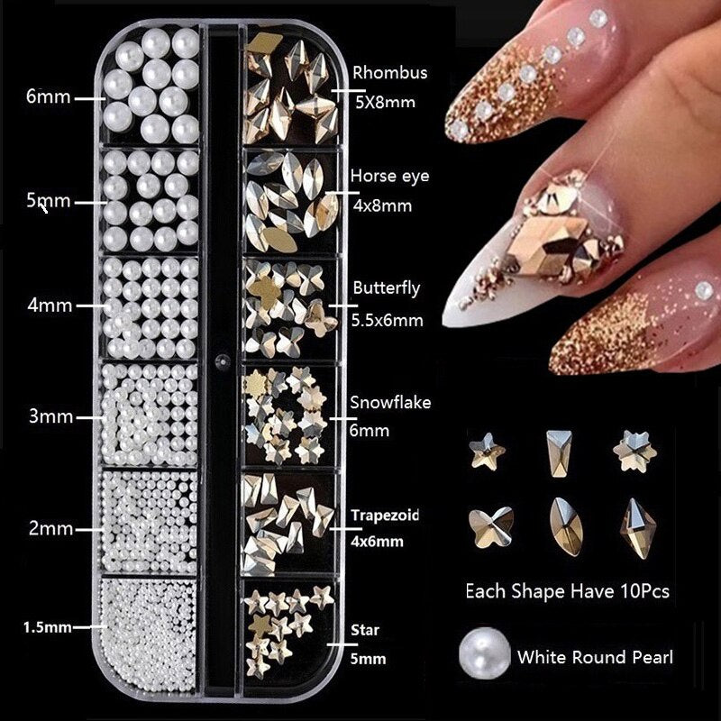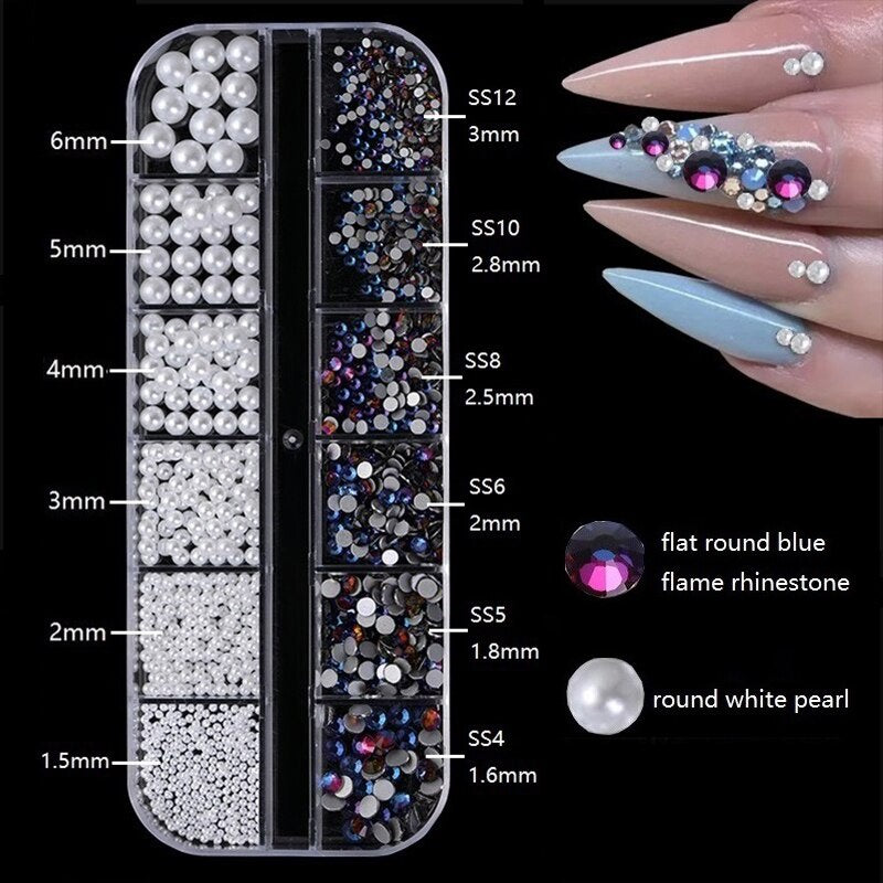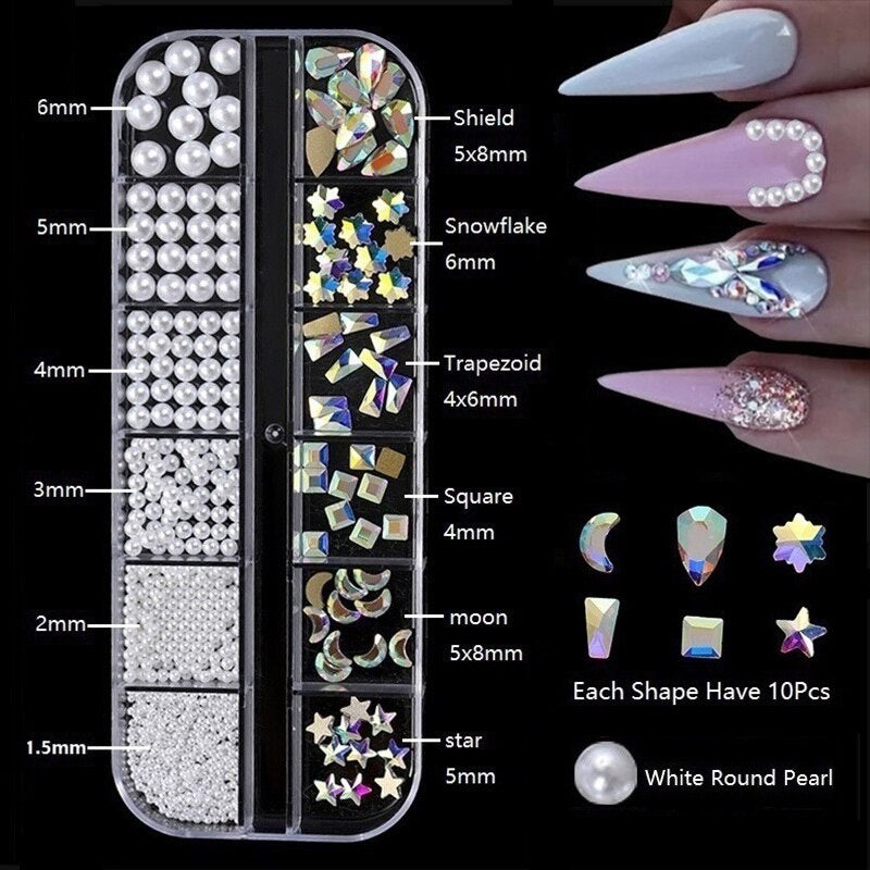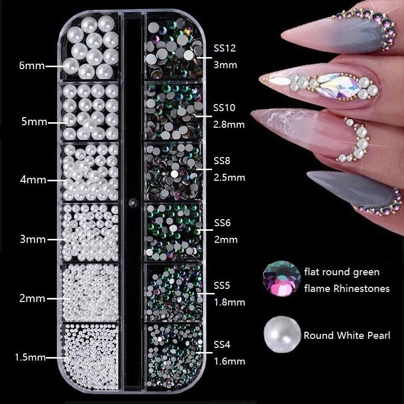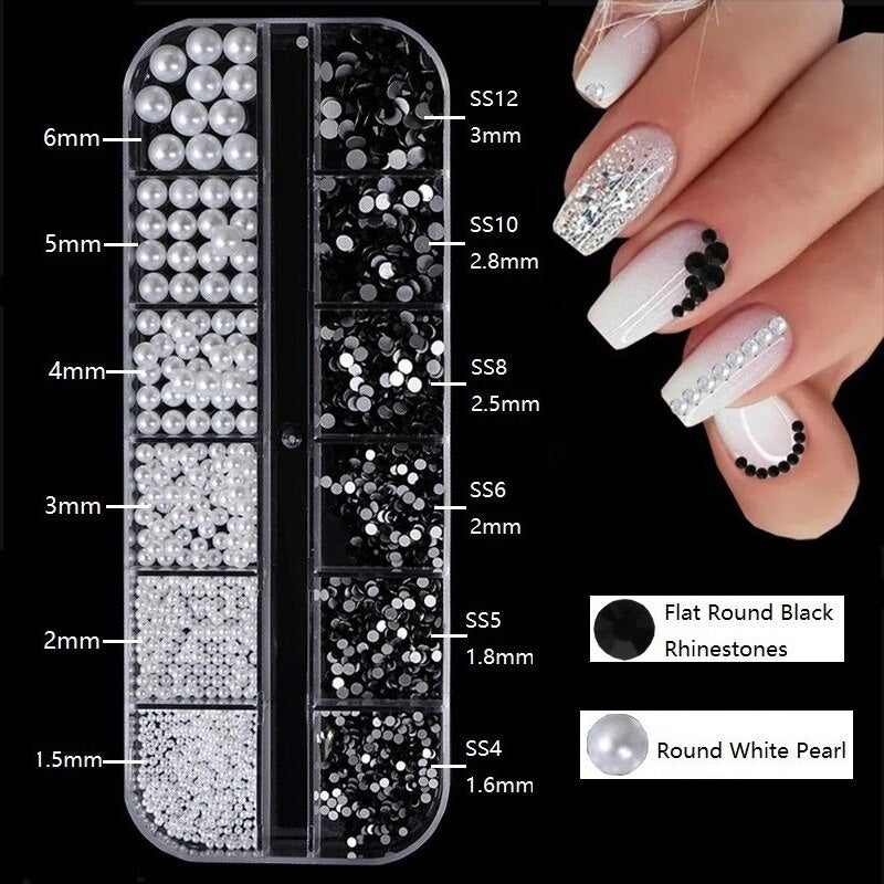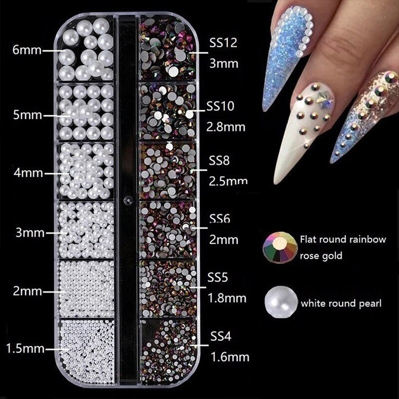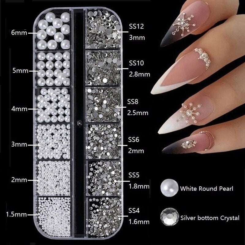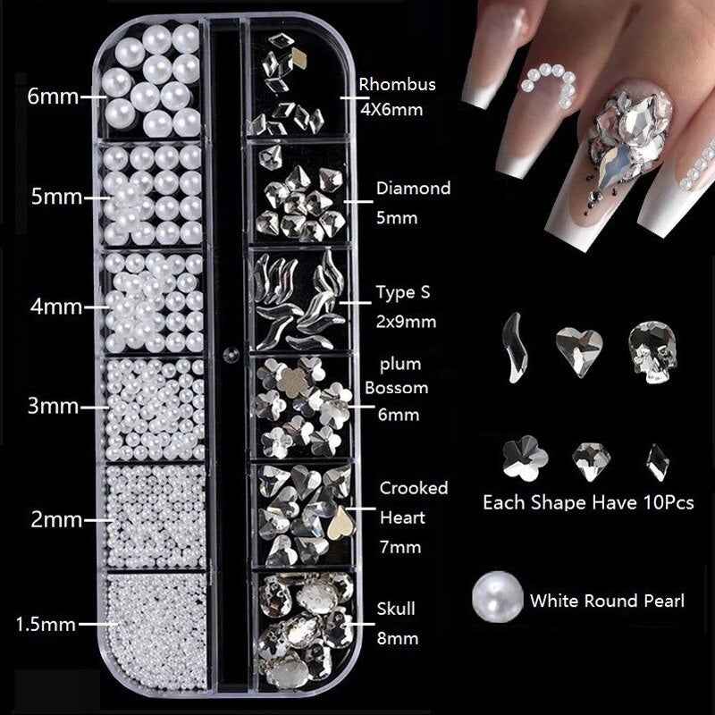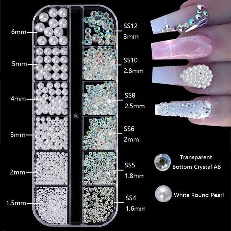 1.5-6mm Round/Half Pearl Beads 12Girds Box Luxury ABS White Heart Pearl Jewelry Nail Pearls Korean Nail Parts Japanese Nail Art,kuku