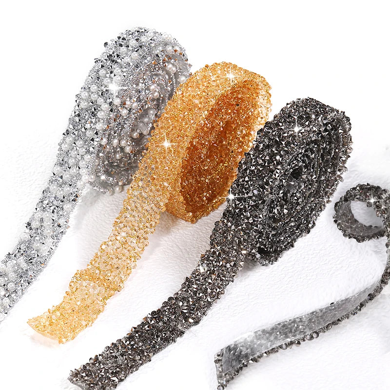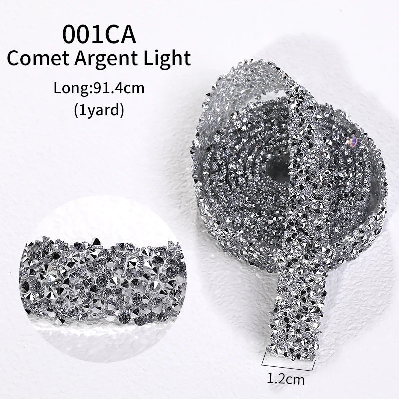1 Yard Motif Rhinestones Trim Crystal Strass DIY Rhinestone Tape Applicator Glue On Rhinestones Iron On Appliques For Dress Bags