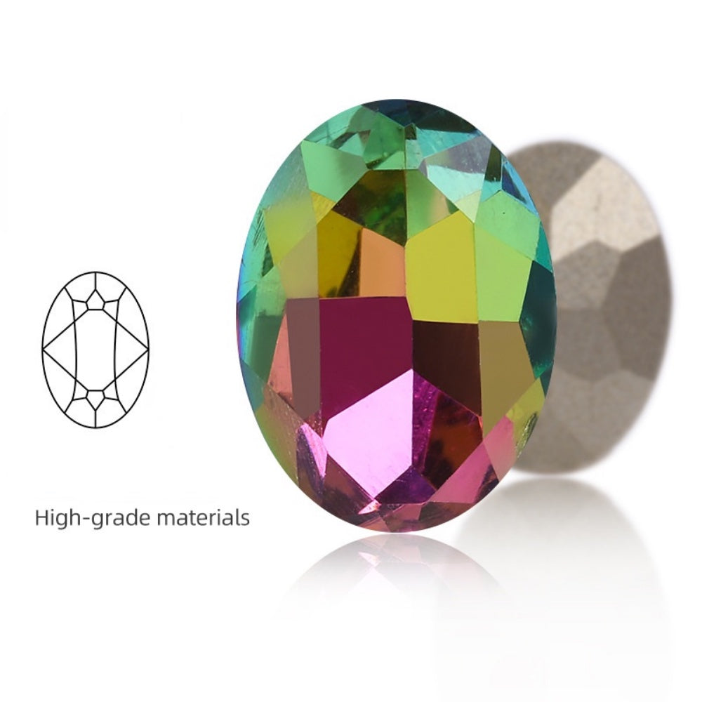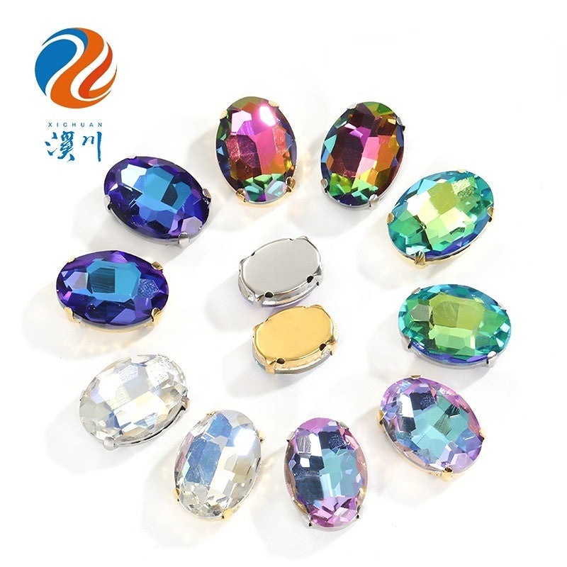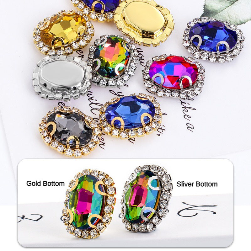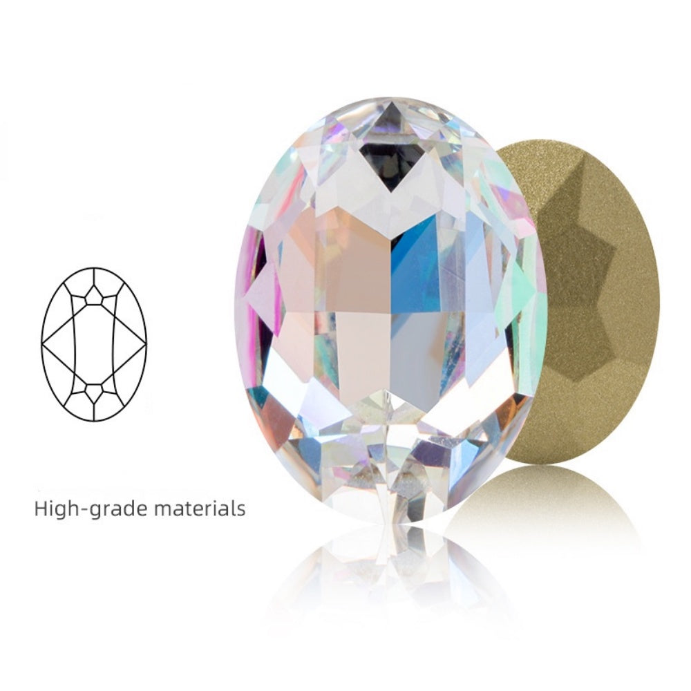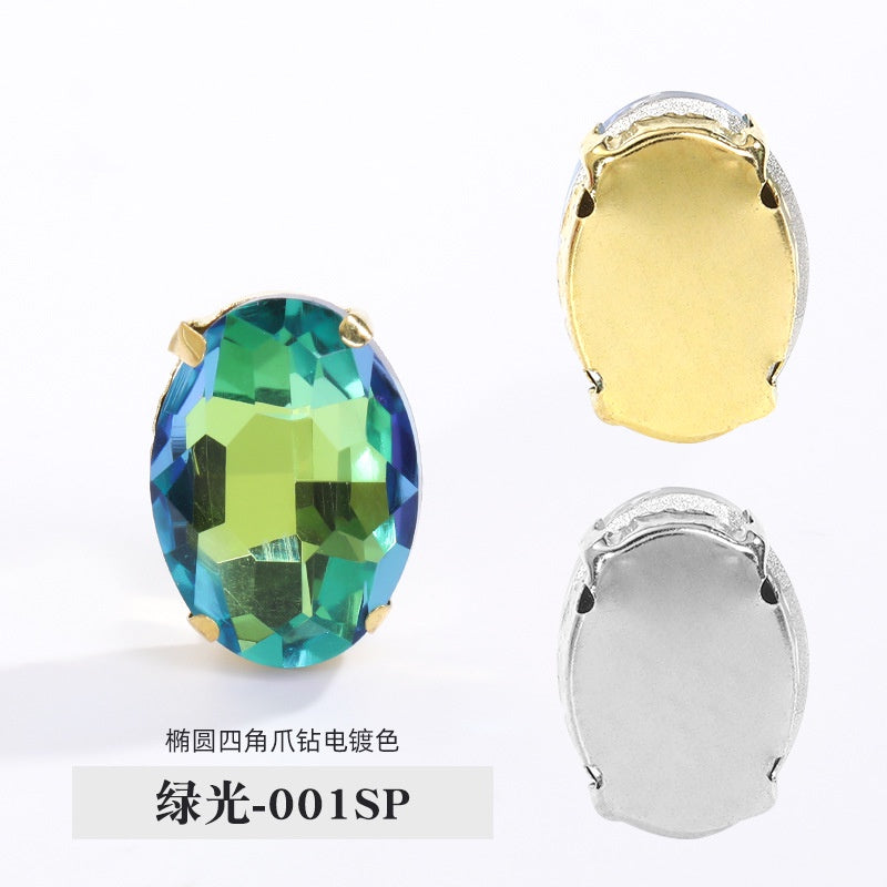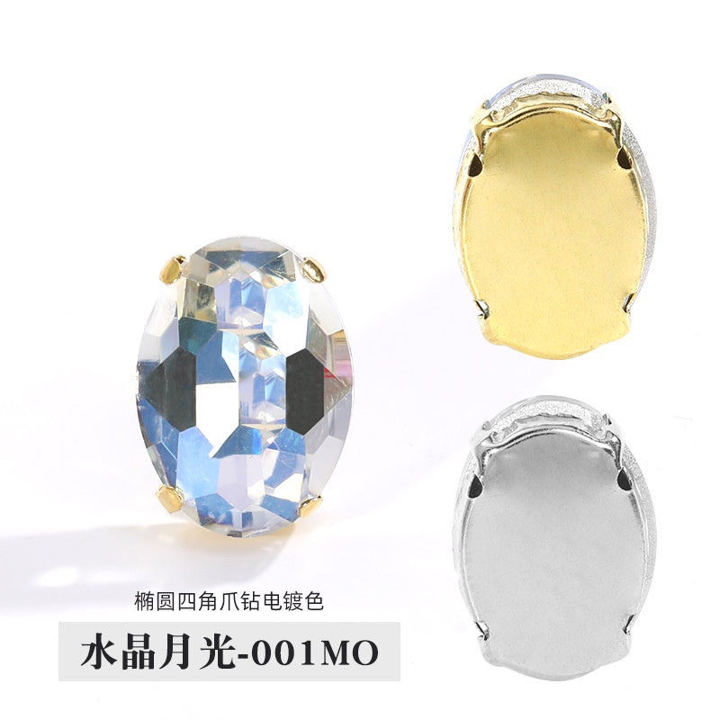 10*14mm/13*18mm Oval Four-corner Claw Rhinestone Electroplated Color Hand-sewn Crystal Glass Crystal DIY Clothing Accessories