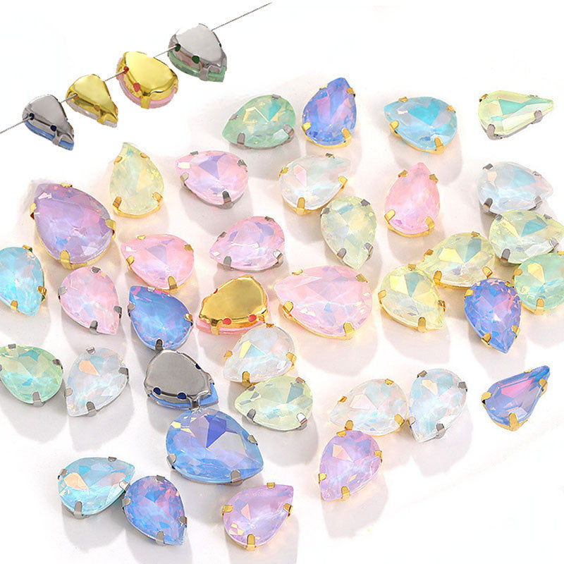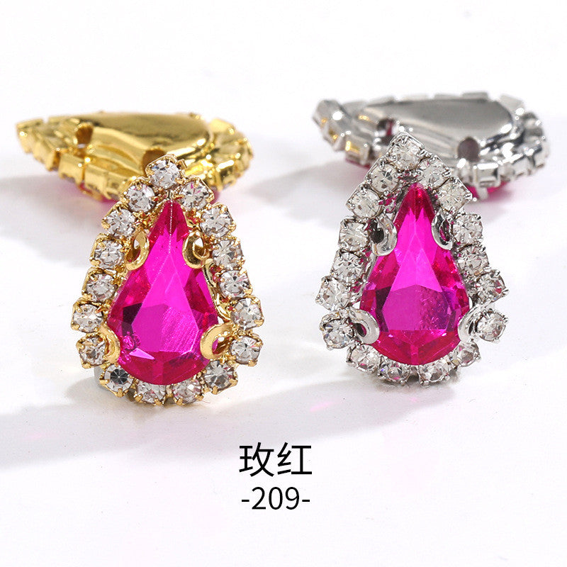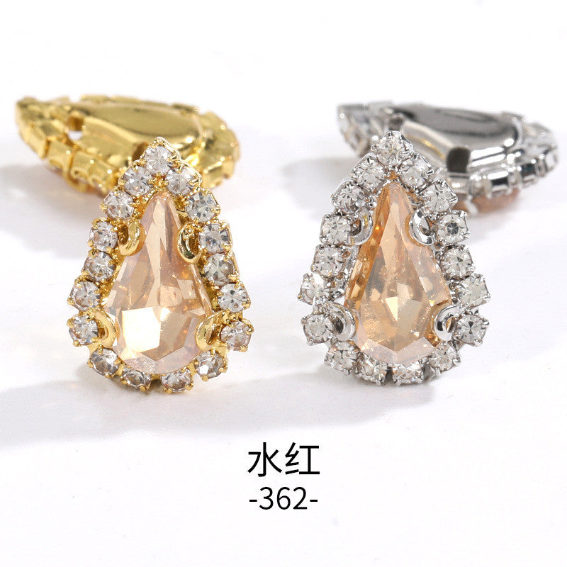 10 * 14/13 * 18mm water drop claw diamond, gold/silver bottom support four-claw crystal claw diamond, hand-sewn rhinestone, clothing accessories