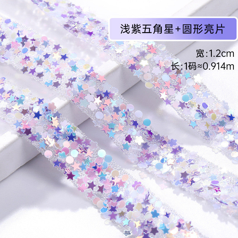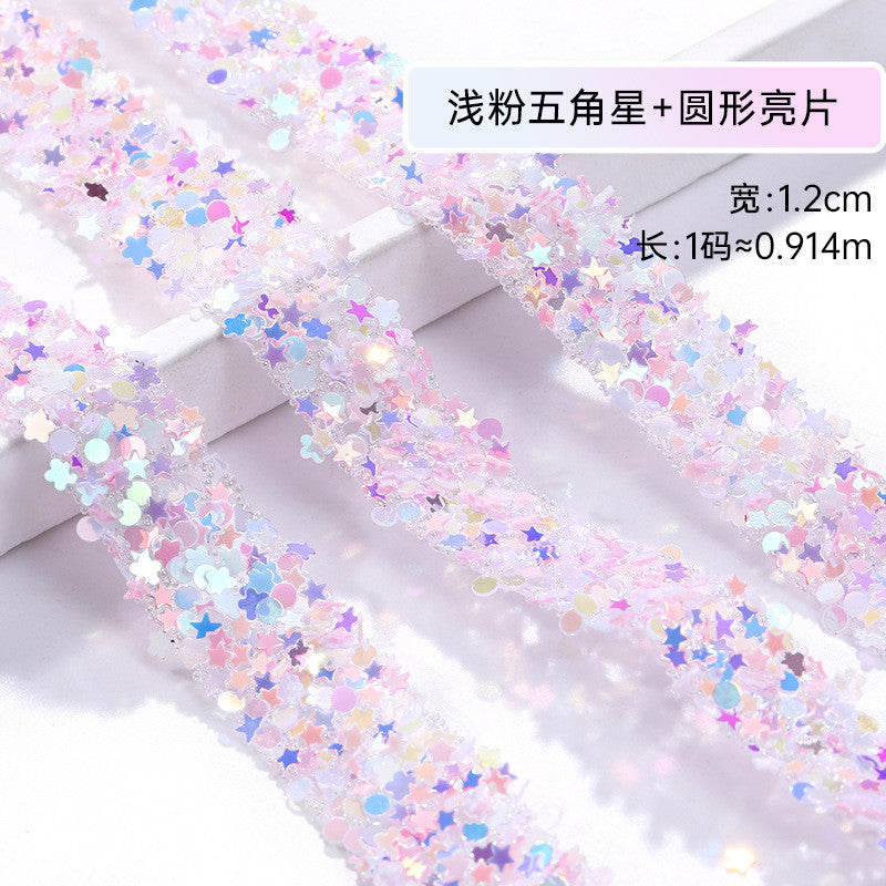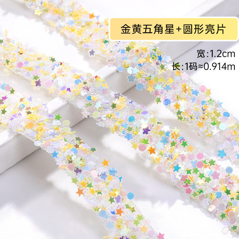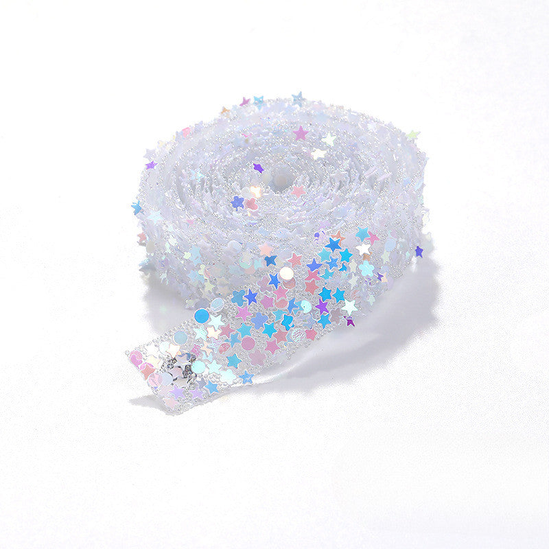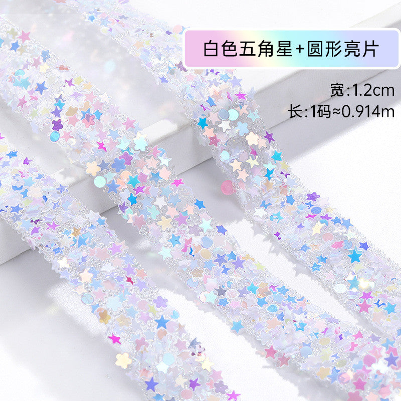 1.2cm Width Shiny Star Self-adhesive Rhinestone Trims Ribbons Resin Strips for Clothing Accessories