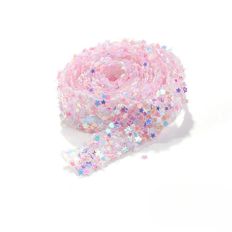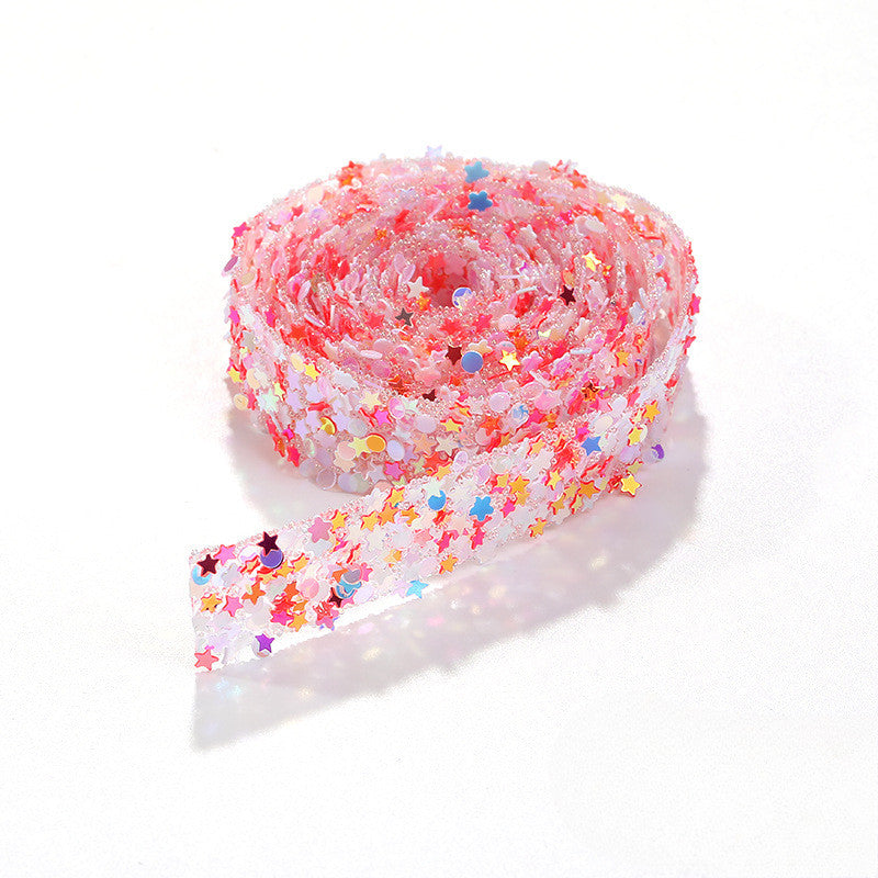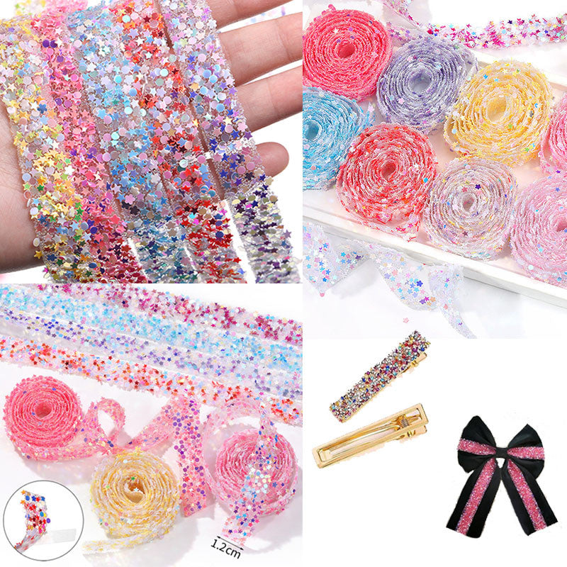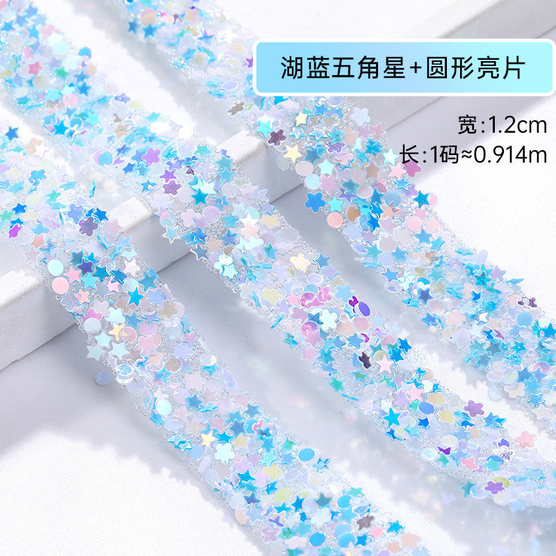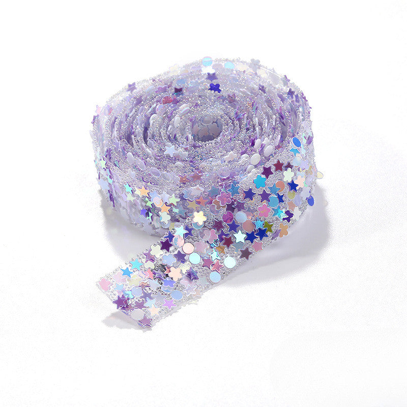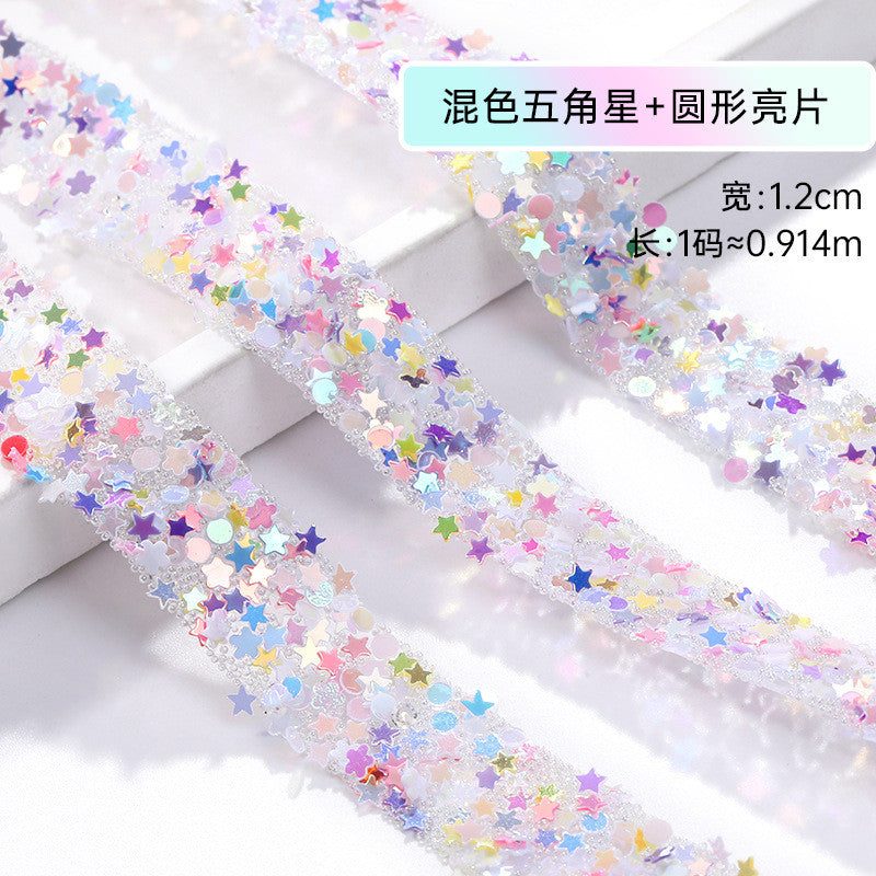 1.2cm Width Shiny Star Self-adhesive Rhinestone Trims Ribbons Resin Strips for Clothing Accessories