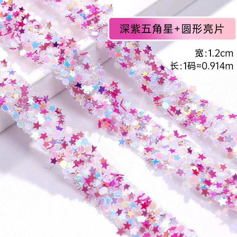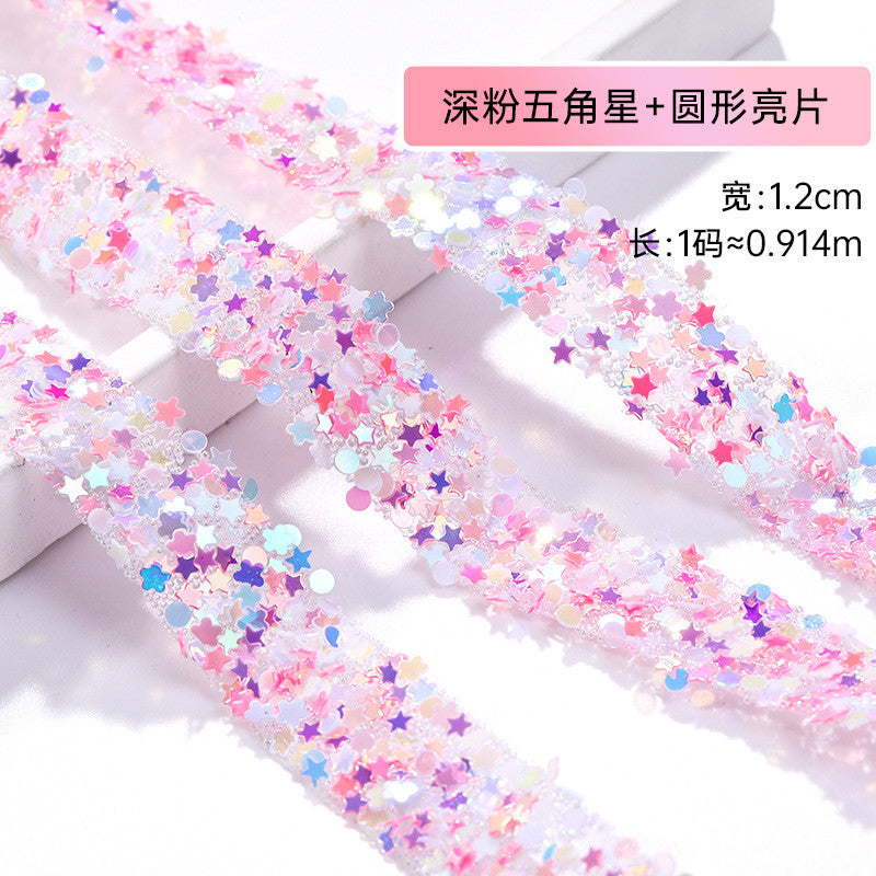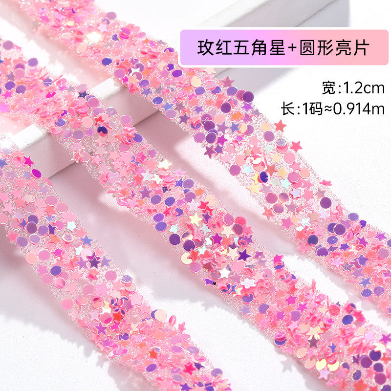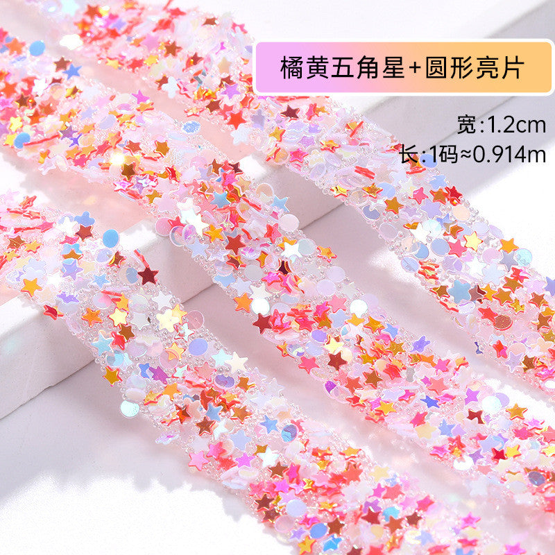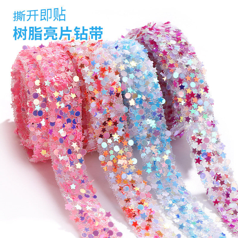 1.2Cm wide, resin pentagram sequined diamond belt, glue-free tear-off and stick toy dolls and other decorative diamond clothing accessories