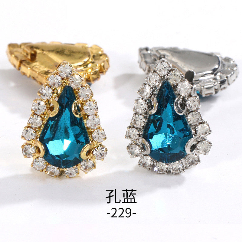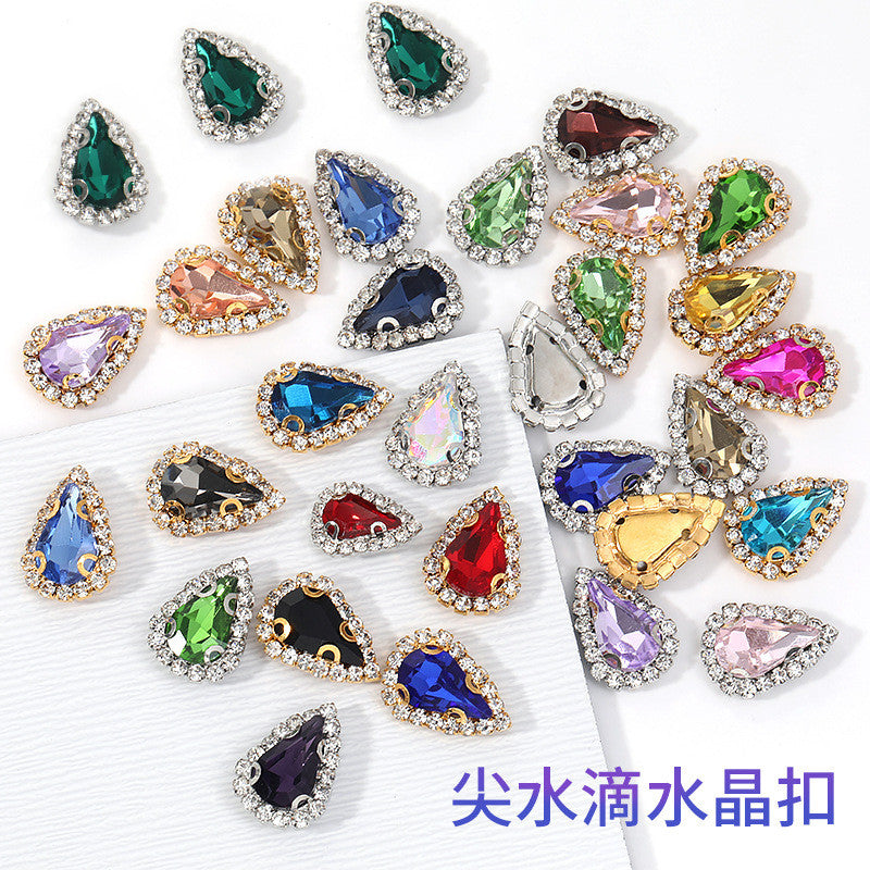 10 pointed water drop claw drills, 4 holes around the edge, hand sewn rhinestones DIY headgear accessories, clothing accessories, flash diamond accessories, pointed water drop crystal buckle.