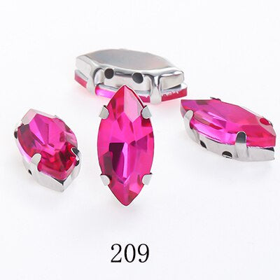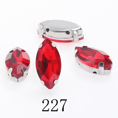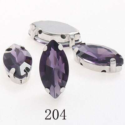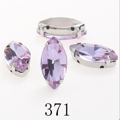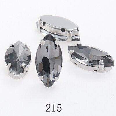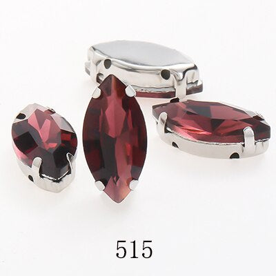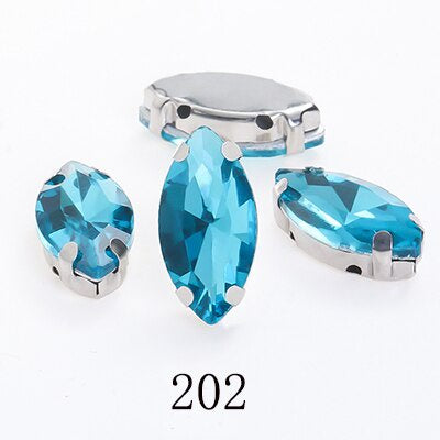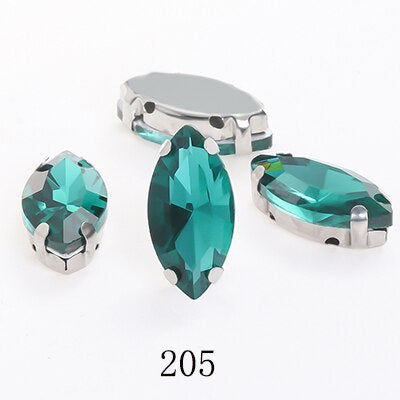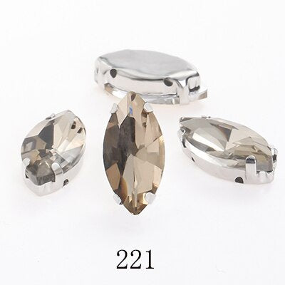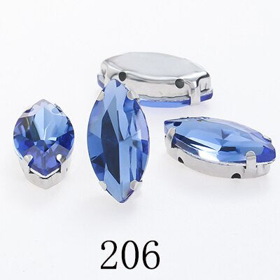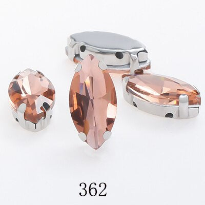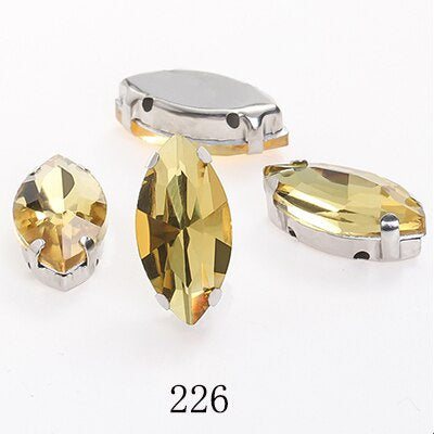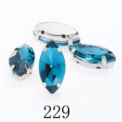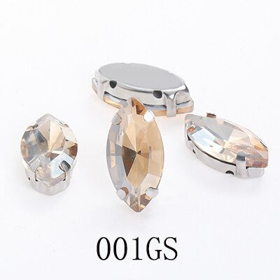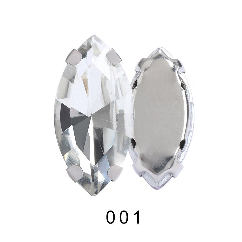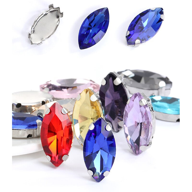 TonyBead Horse Eye Navette Point Back Stones Metal Base Decorations For Clothes Sewn Rhinestones for Needlework Wedding Dress Crystal Jewelry for Crafts