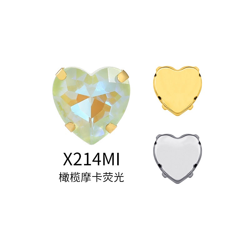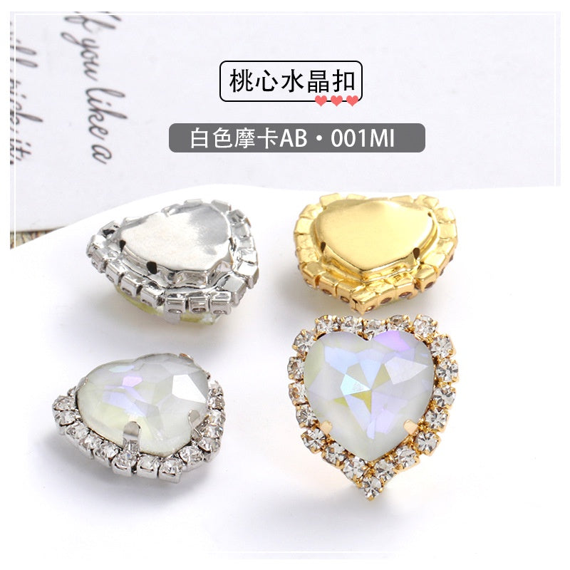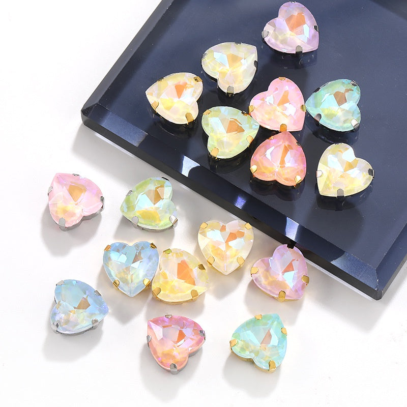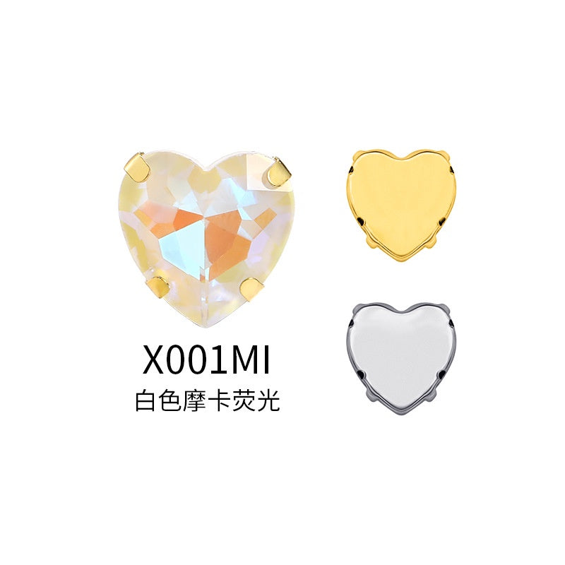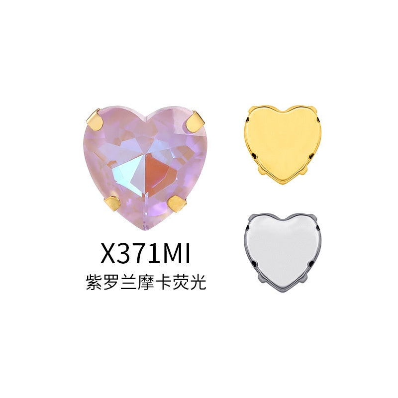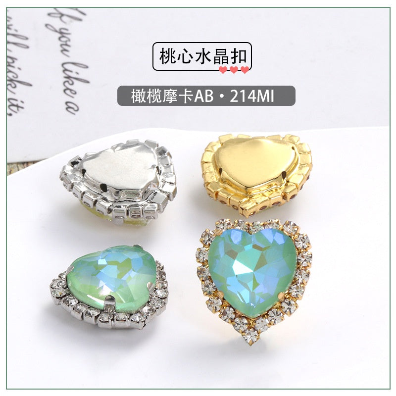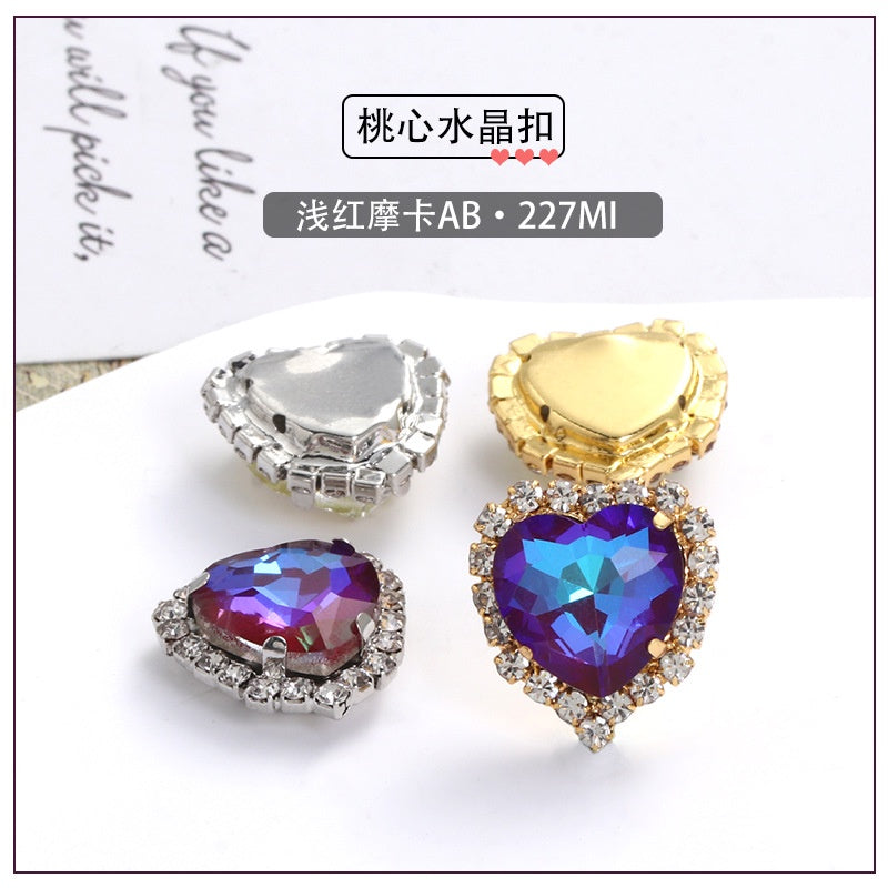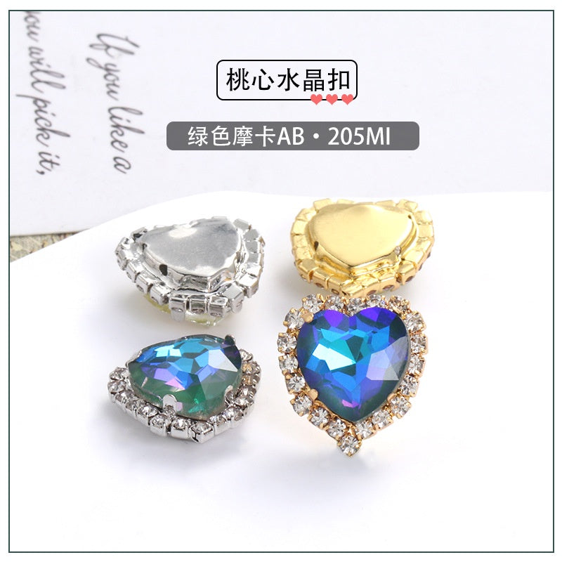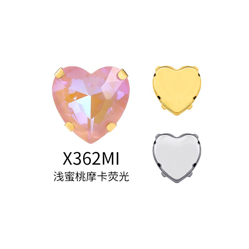 12Mm love rhinestone, heart-shaped mocha fluorescent peach heart four-corner claw drill DIY jewelry accessories hand sewn pointed bottom rhinestone sticker rhinestone