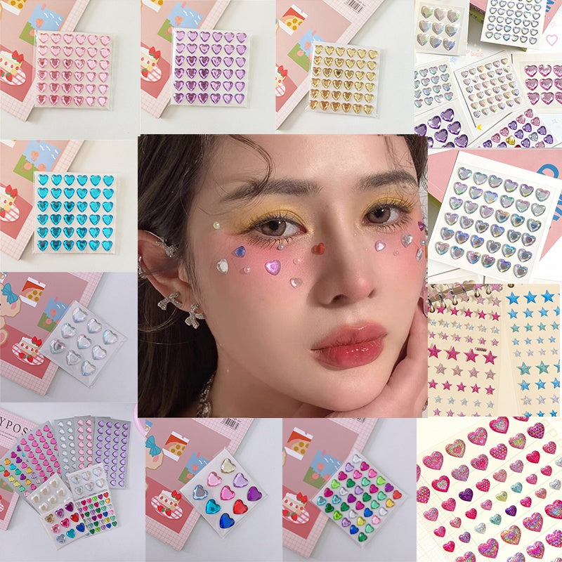 Dazzle Stage AB Color Eye Makeup Sticker Diamond Love Drop Broken Rhinestone Sticker Face Tear Eye Tail Flash Diamond Sticker