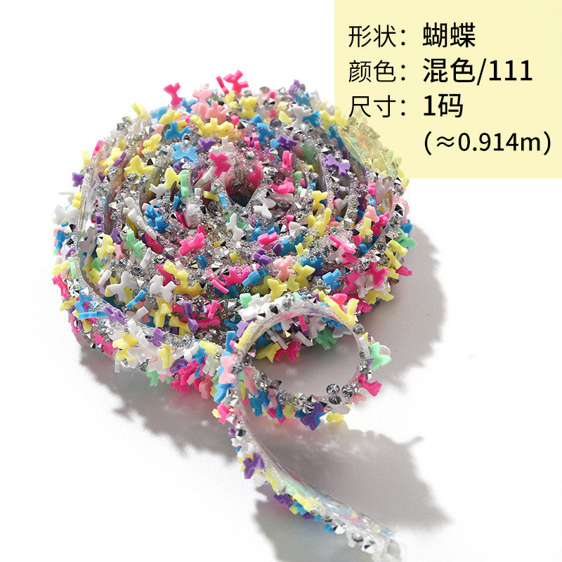 1.2cm Width Shiny Star Self-adhesive Rhinestone Trims Ribbons Resin Strips for Clothing Accessories