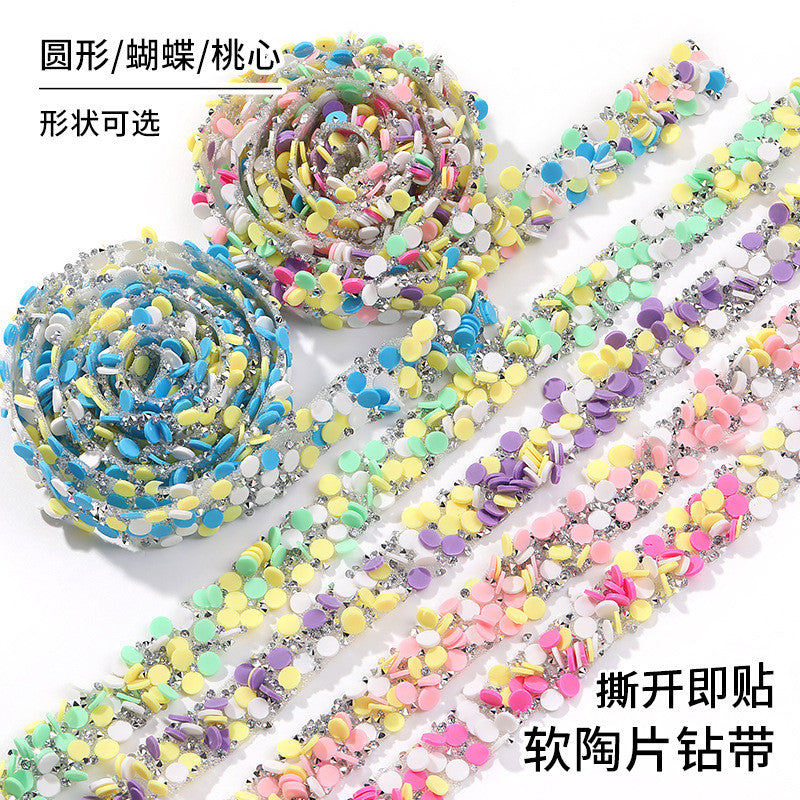 Tear open and stick peach heart butterfly round soft pottery sheet drill belt DIY clothing accessories handicraft patch accessories