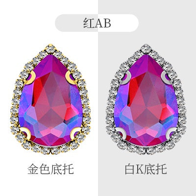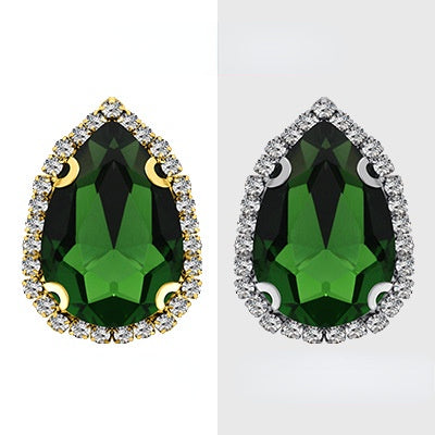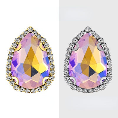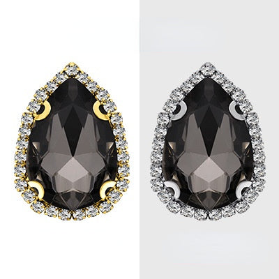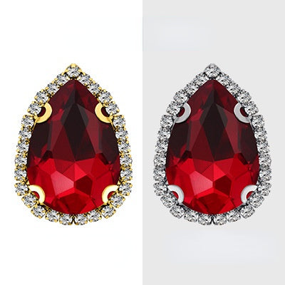 18*25mm Large Size Water Drop Crystal Buckle Claw Rhinestones with Gold/Silver Base for Clothing Decoration