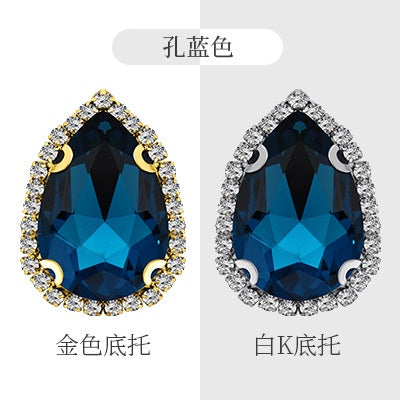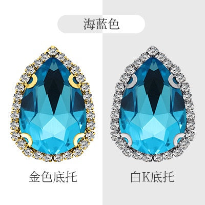 10 pointed water drop claw drills, 4 holes around the edge, hand sewn rhinestones DIY headgear accessories, clothing accessories, flash diamond accessories, pointed water drop crystal buckle.