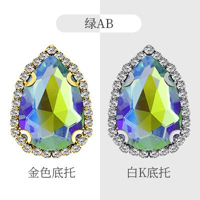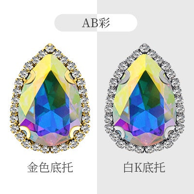 7 * 12Mm/10 * 14mm water drop glass buckle flat bottom double hole rhinestone hand sewn crystal stone AB color flat buckle wedding accessories