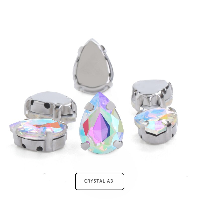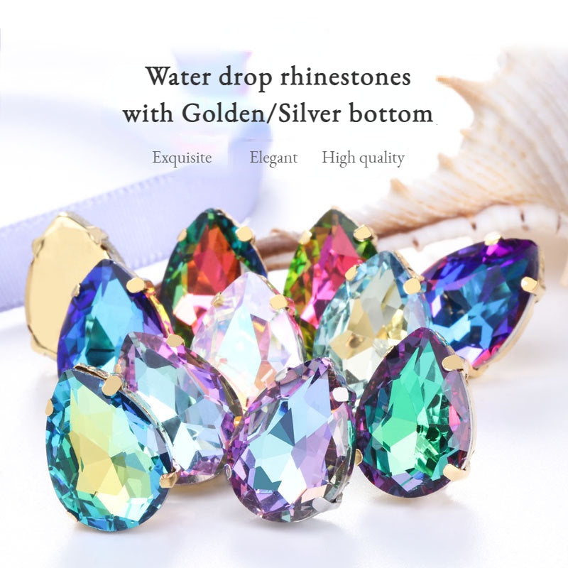 10 * 14/13 * 18mm water drop claw diamond, gold/silver bottom support four-claw crystal claw diamond, hand-sewn rhinestone, clothing accessories