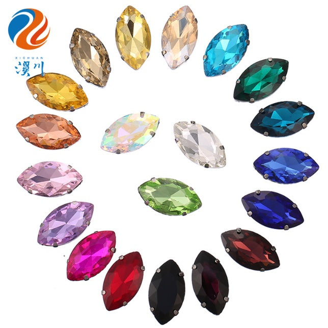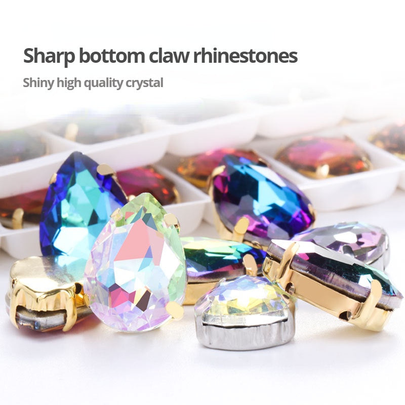 20*30mm 10pcs Drop Shape Glass Rhinestones with Claw Sew on Teardrop Crystal Stone Diamond Metal Base