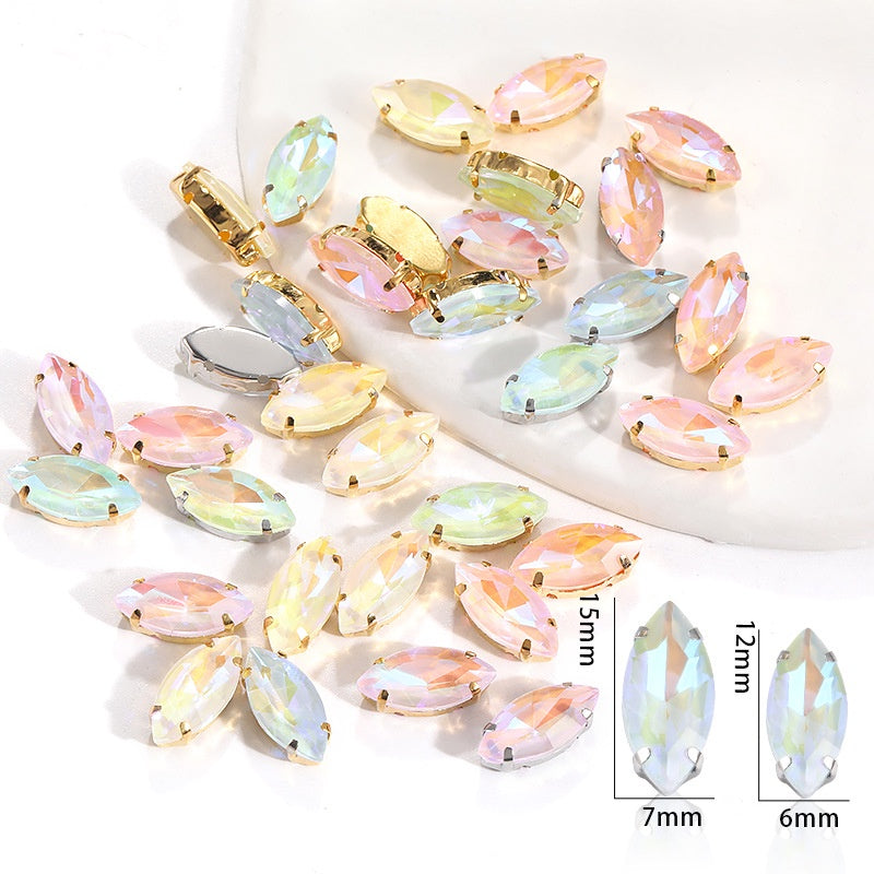 4*15mm Navette Slender Crystal Shape Artificial Perforation Sewn Crystal Base for Sewing Garment Accessories