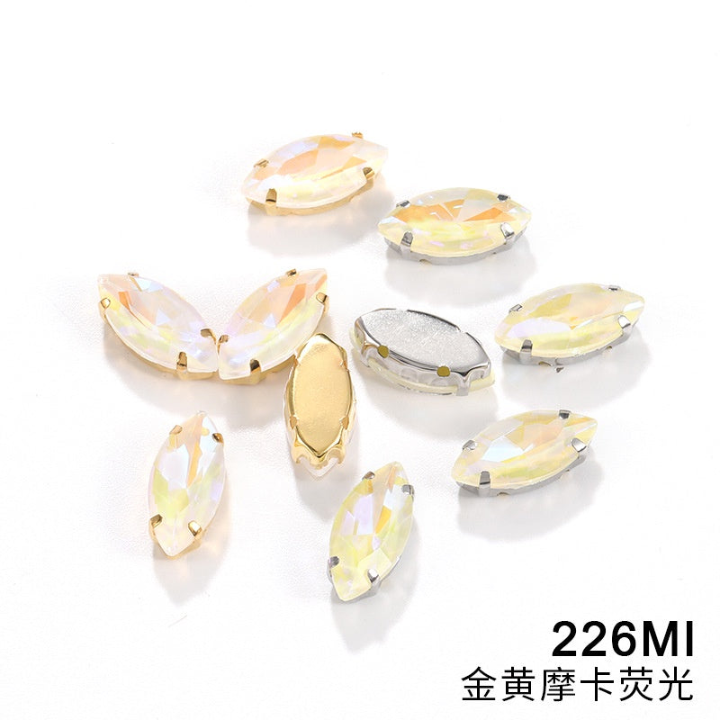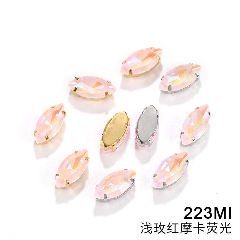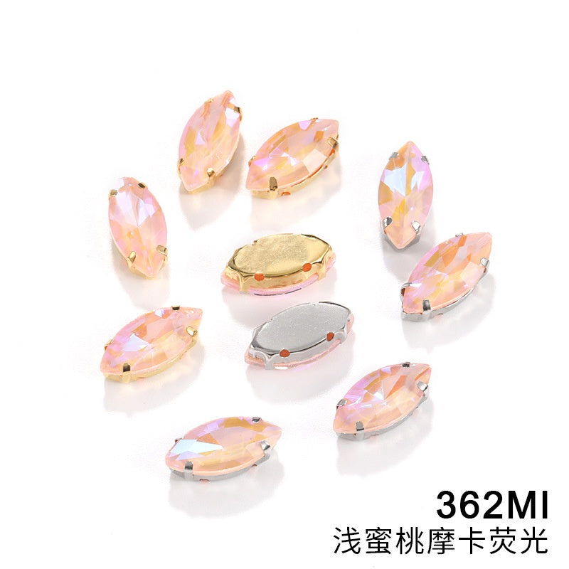 Horseeye 6*12mm/7*15mm Leaf Shape Mocha Fluorescent Quadangle Claw Rhinestone Diy Jewelry Material