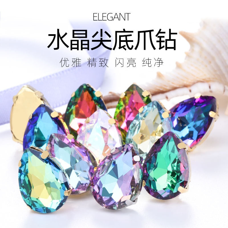 TonyBead 10 * 14mm/13 * 18mm high-end diamond water drop, pointed bottom claw diamond, crystal stone, four-corner claw drill, hand sewn diamond jewelry accessories, clothes accessories