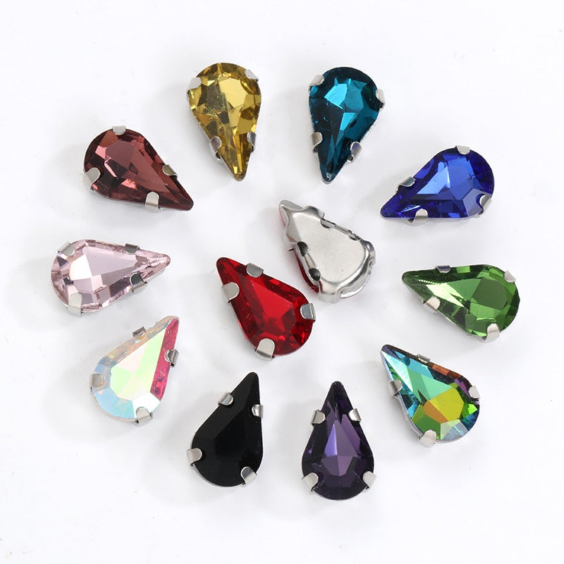 5x8/6x10mm Drop Crystal Stone With silver bottom Rhinestone for Sewing on Clothes Sewn on Rhinestone for Needlework
