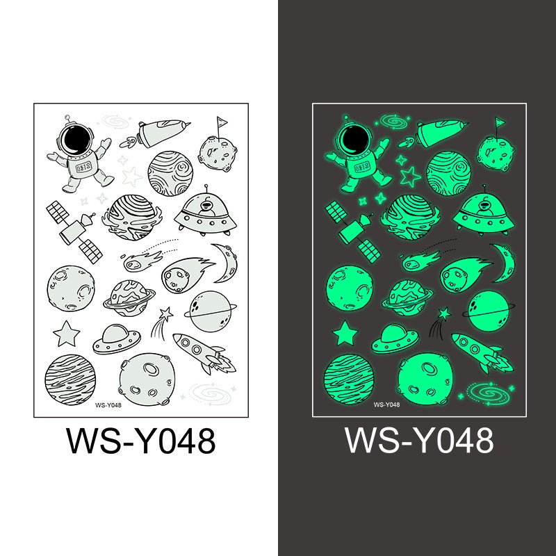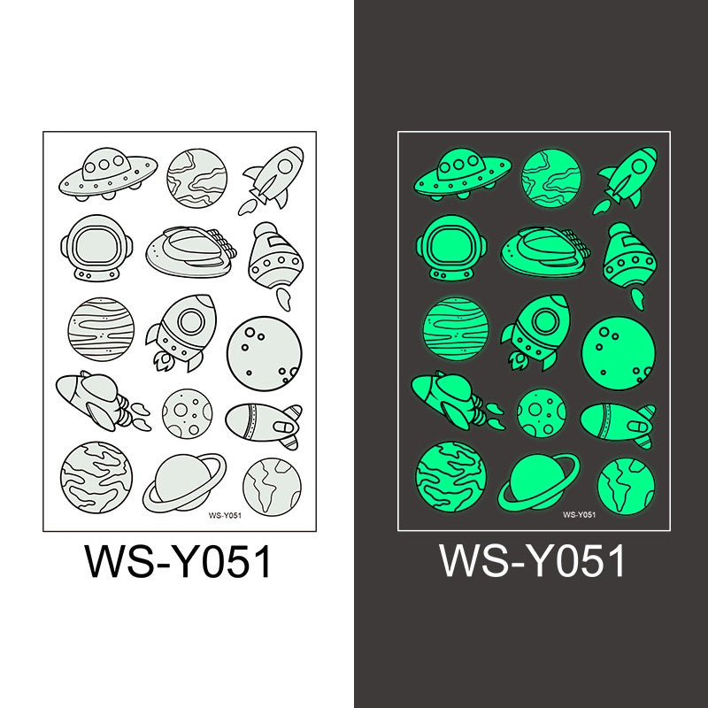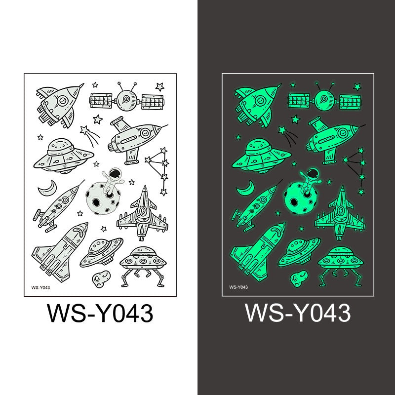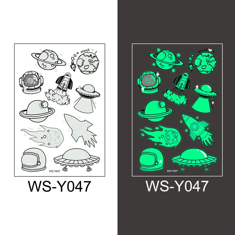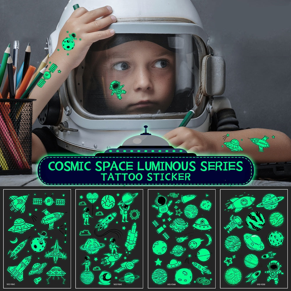 Waterproof Luminous Tattoo Stickers Cute Children's Cartoon Party Universe Space Rocket UFO Interstellar Temporary Stickers