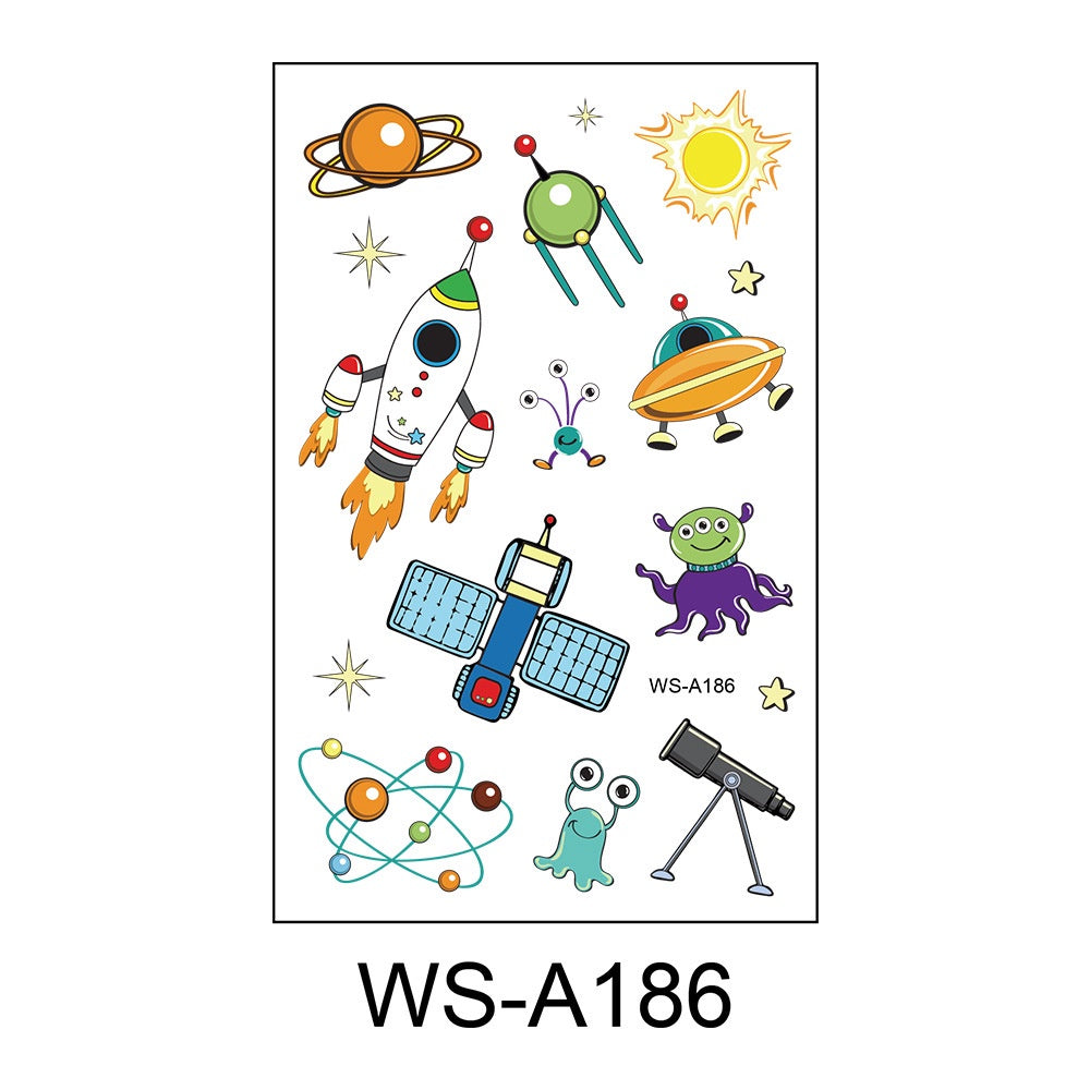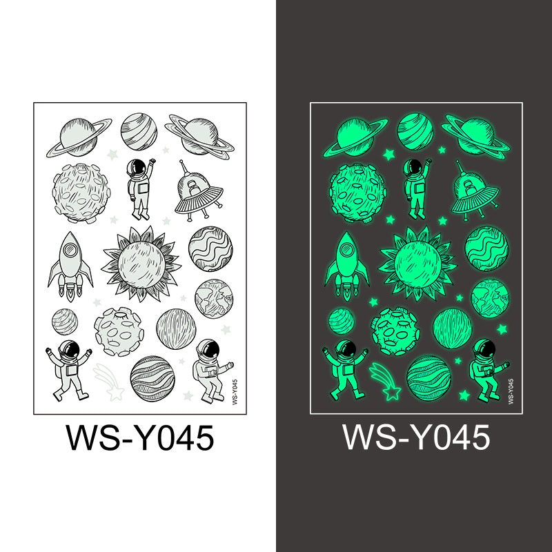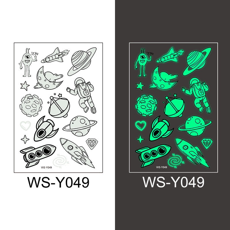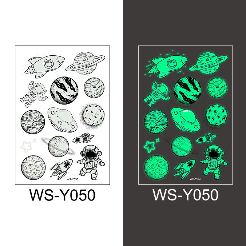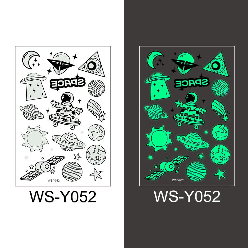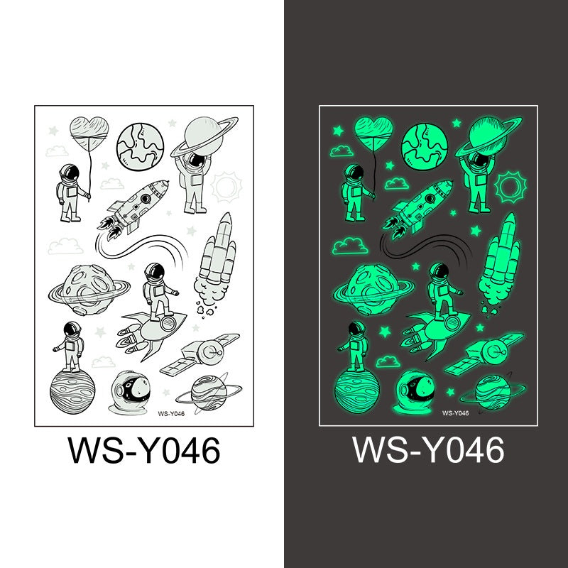 Waterproof Luminous Tattoo Stickers Cute Children's Cartoon Party Universe Space Rocket UFO Interstellar Temporary Stickers