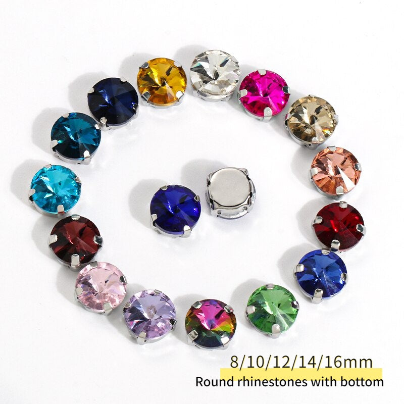 8/10/12/14/16/18mm Round Beads Glass Stone with Silver Claw Sew on Rhinestone for Clothes Accessory