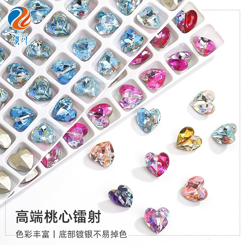 14mm Peach Heart Crystal Glass Rhinestone Diy Handmade Stick Rhinestone Nail Rhinestone