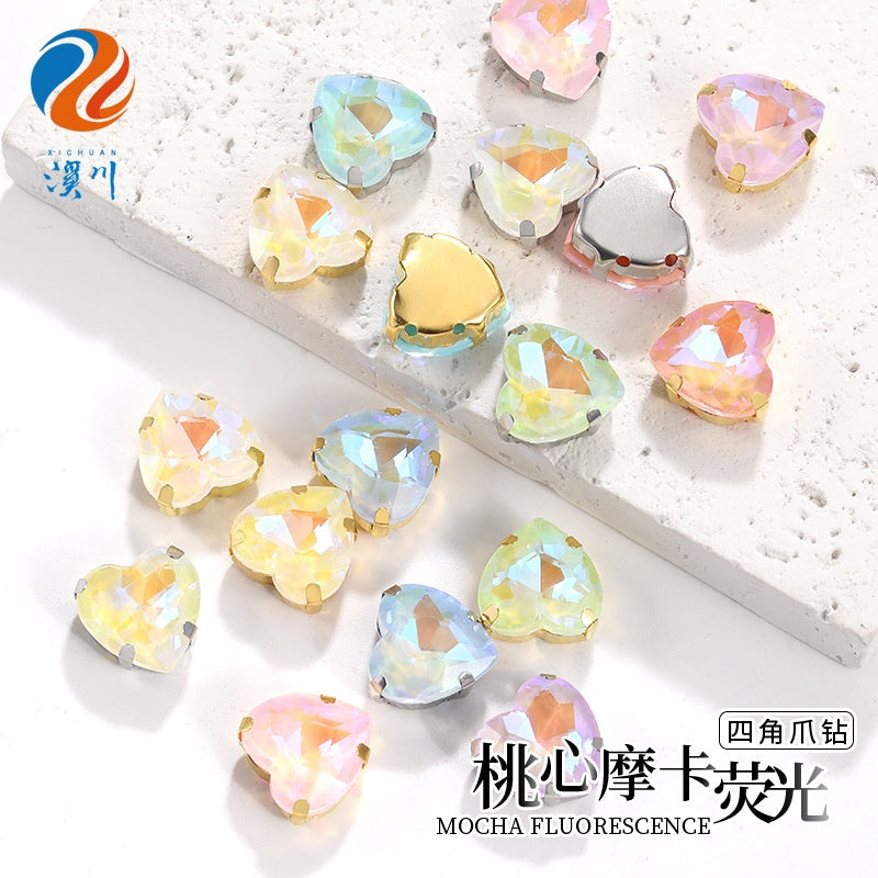 TonyBead 12mm love rhinestone, heart-shaped mocha fluorescent peach heart four-corner claw drill DIY jewelry accessories hand-sewn pointed bottom drill sticker drill
