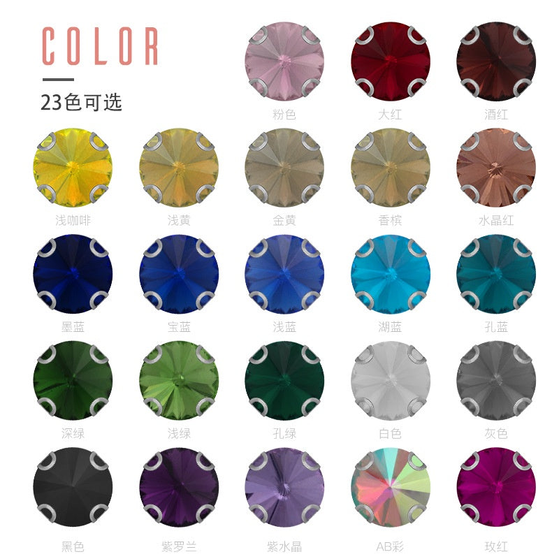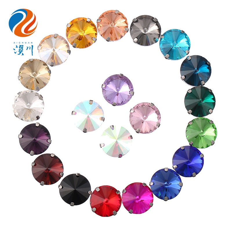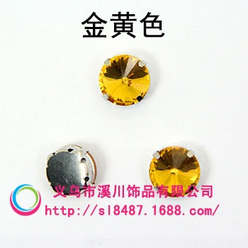 10pcs 12mm Round Rivoli Shape Crystal Rhinestone with Gold/sliver Bottom for DIY Handmade Clothing Accessories