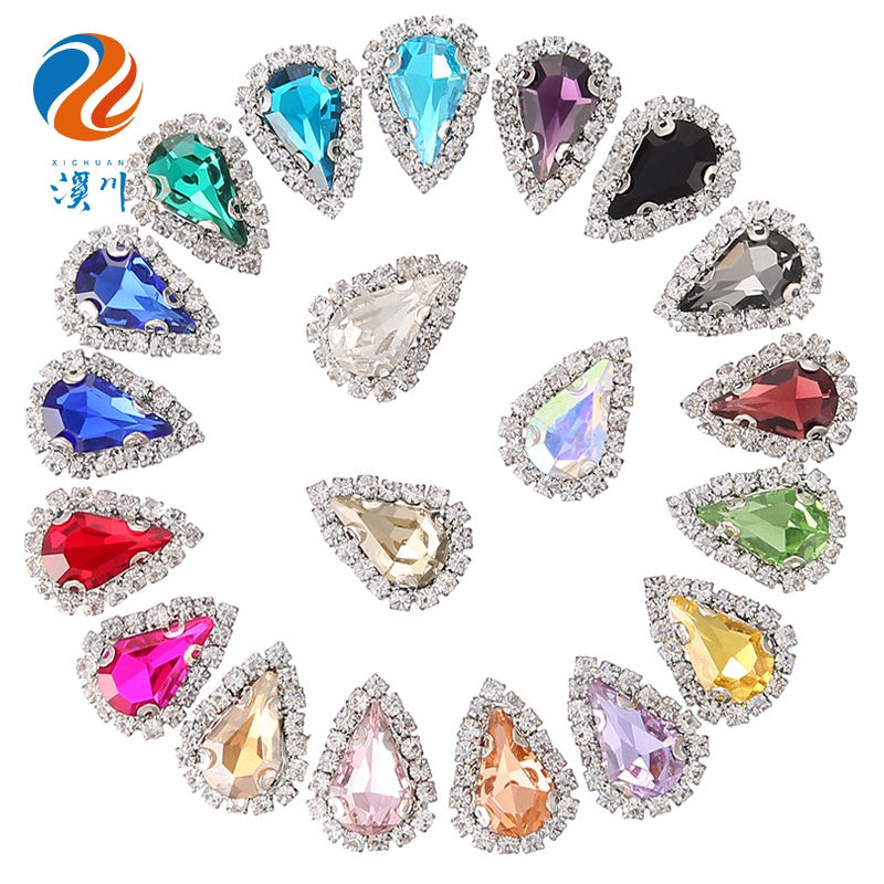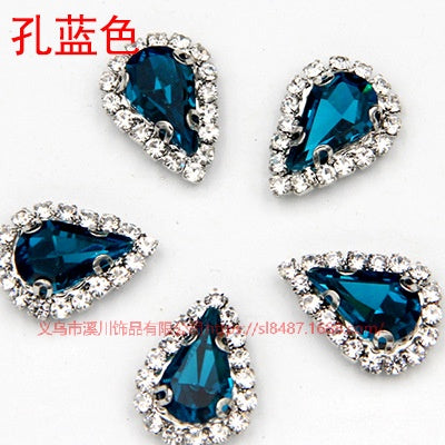 10pcs 5*8mm Sharp Drop Claw Rhinestone Sew on Crystal Rhinestone with Gold/Sliver Claw Crystal for Clothing Garment Diy Headdress Accessories