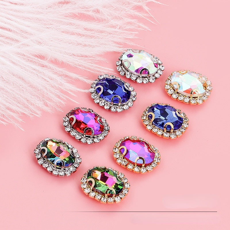 10pcs 6*8mm Oval Crystal Buckle Glass claw Rhinestone girth Copper claw diy accessories Clothing Accessories Shoes