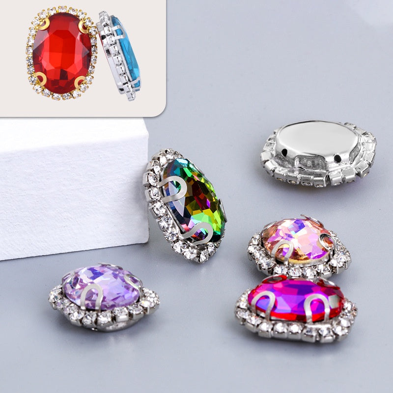 10pcs 8*10mm Oval Shape Crystal Rhinestone with Gold/Sliver Bottom for DIY Clothing Jewelry Making