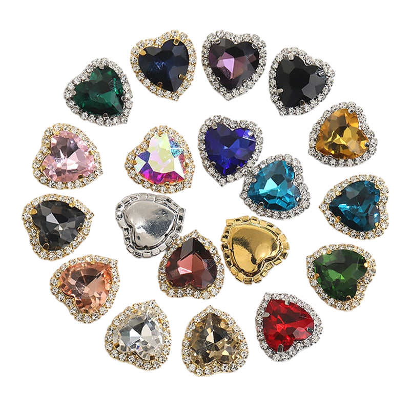 10pcs 18mm Heart Shape Crystal Rhinestone With Sliver/Gold Bottom Rhinestone For DIY Clothing Ornament