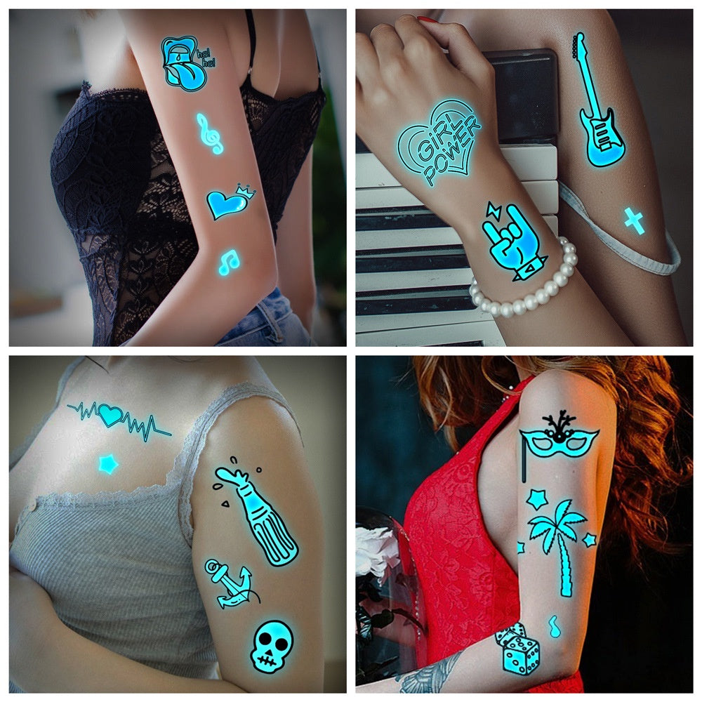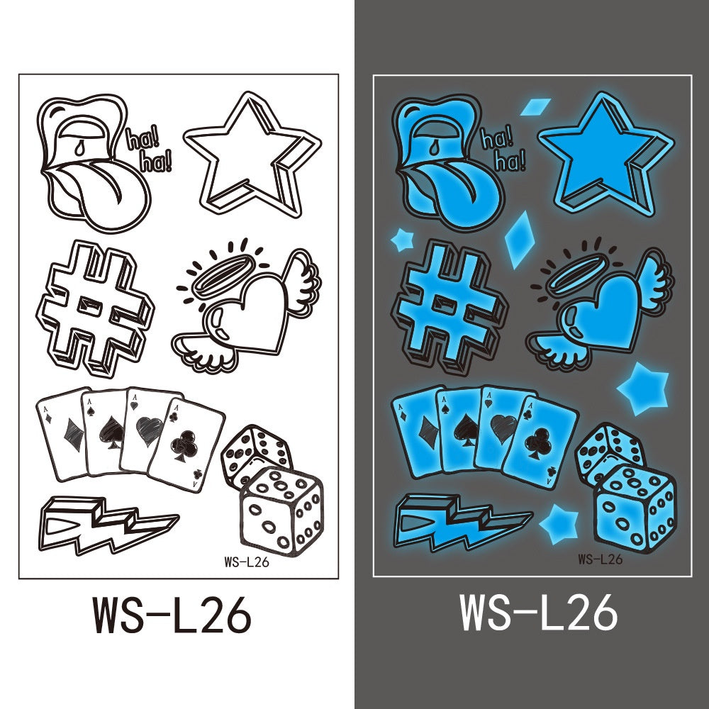【Ready stock】kawaii Sexy tattoo stickers, fashion trends, nightclubs, bars, music festivals, carnival parties, tattoo stickers, fluorescent notes, luminous cool face stickers