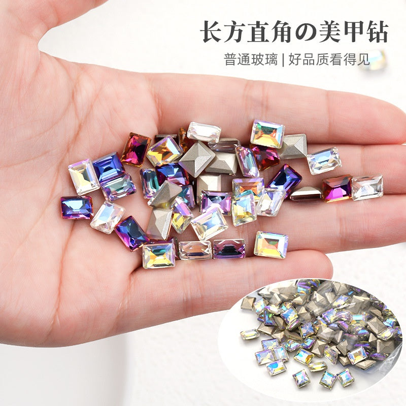 【ready stock】New Design 6*8mm Step Cut 3D Nail Art Rhinestone K9 Nails For DIY Decals Nail Shiny Crystals