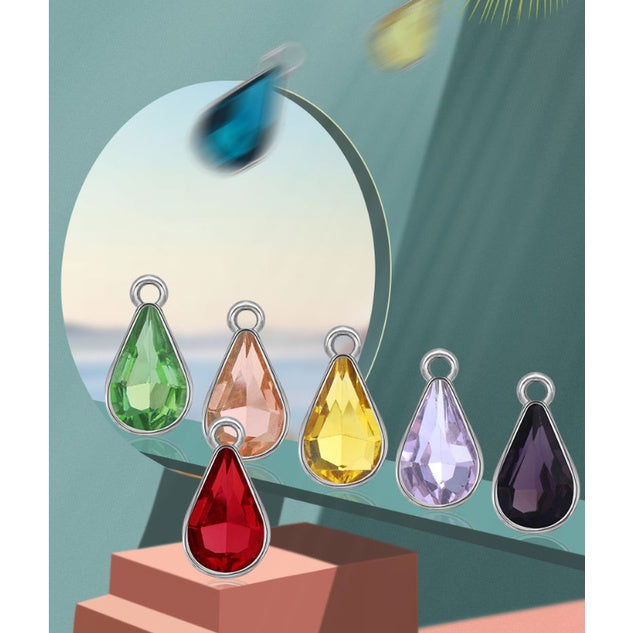 【ready Stock】Single Hanging Water Drop Single Hole Pendant Inlaid with Crystal Diamond Diy Ear Jewelry Accessories