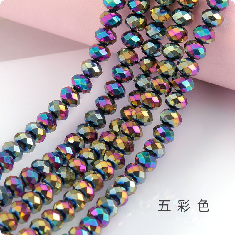 3/4/6/8mm electroplated crystal flat beads 5 pack glass round beads diy jewelry wholesale bead accessories wheel crystal loose beads lanyard