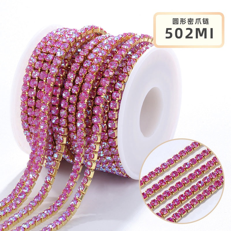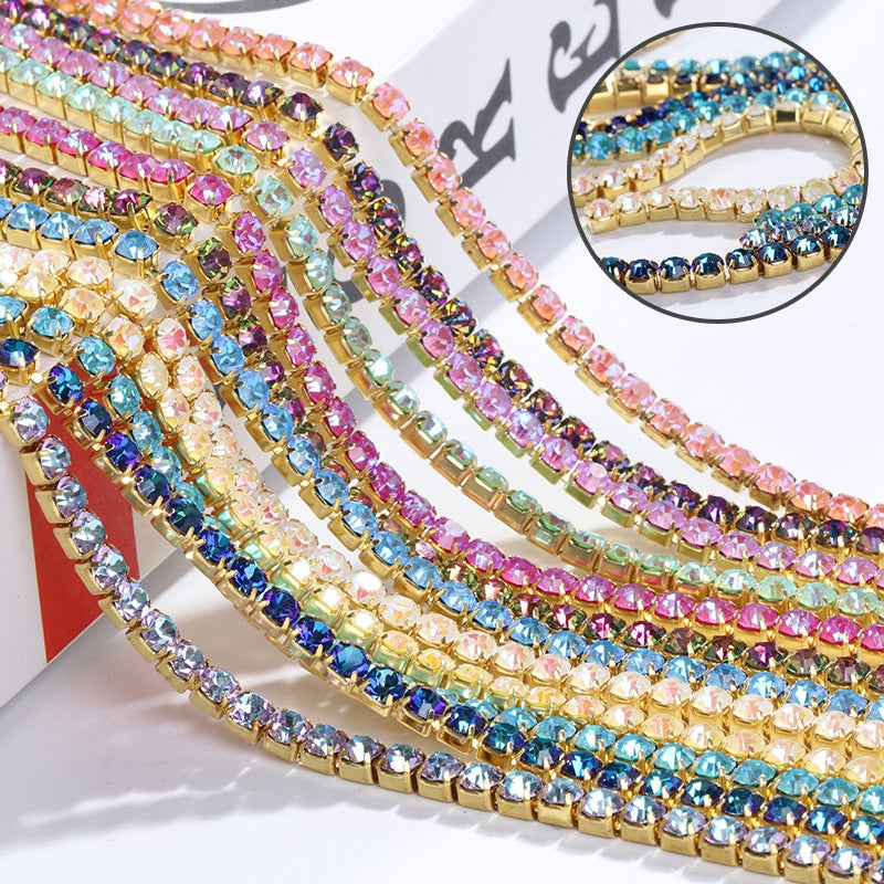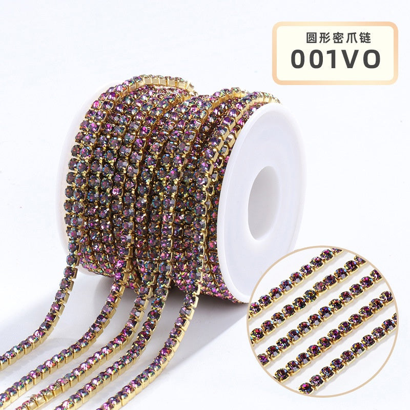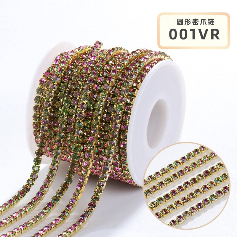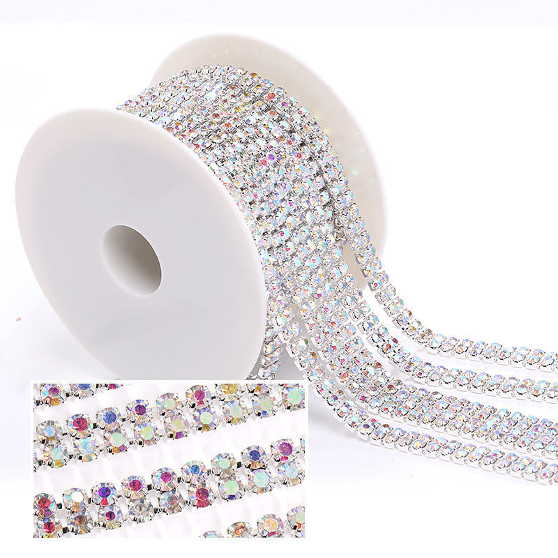 Hot Fashion Style Colorful Double Row Claw Chain Close Rhinestone Cup Chain for Clothing DIY Jewelry Accessories