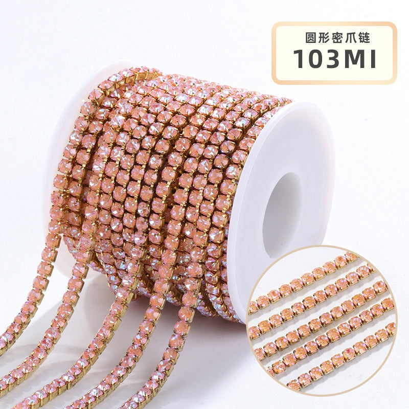 Crystal Mocha Fluoresce Stones Sew On Rhinestones Wth Copper Claw Single Row Cup Chain for Garment