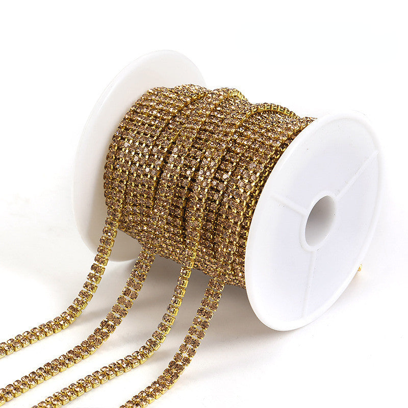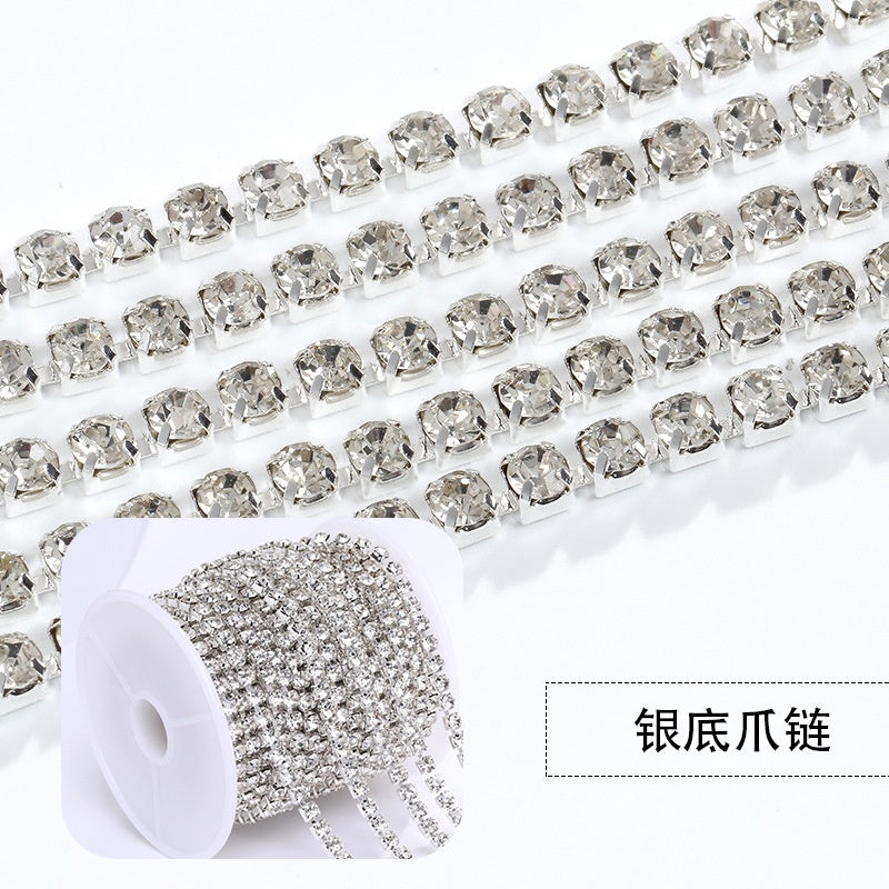Mocha Color Rhinestone Chain Sewing Crystal Chain Silver Claw with Diamond Trims DIY Clothes Accessories