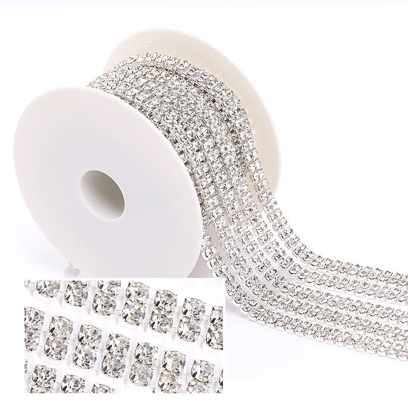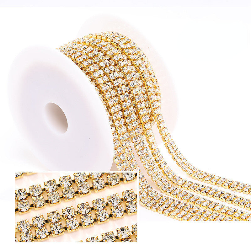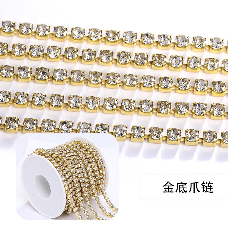 TonyBead rhinestone sticker SS6 - SS12 Crystal Rhinestones Sew On White K Copper Claw Three Row Claw Cup Chain For Garment Jewelry