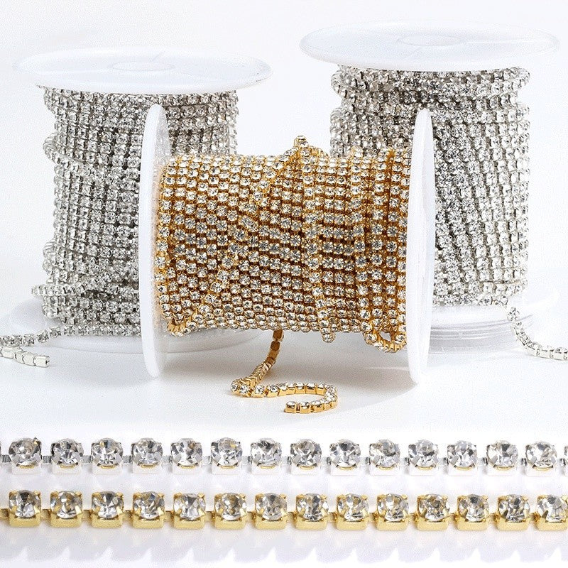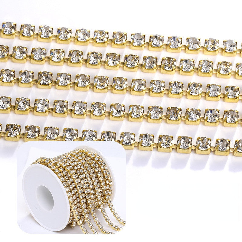 One Roll Length 10m SS6-SS16 Cup Chain Crystal Sew On Rhinestone for DIY Clothes Jewelry Making