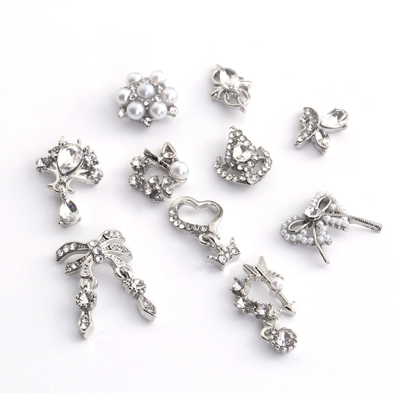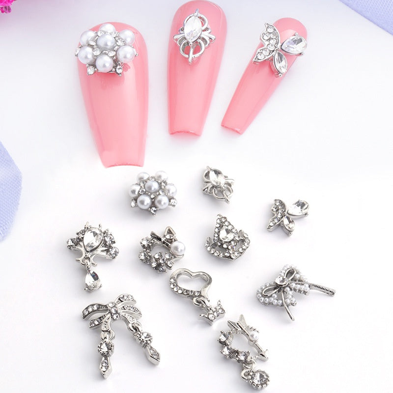 Popular Crystal Butterfly Knot Silver Coating Zircon Alloy Jewelry DIY 3D Nail Art Accessories