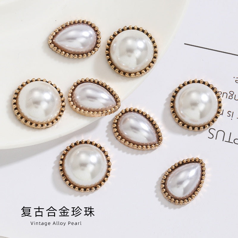 5pcs Korean Style Diy Handmade Alloy Accessories Vintage Round Drop Pearl Alloy Buckle Hairpin