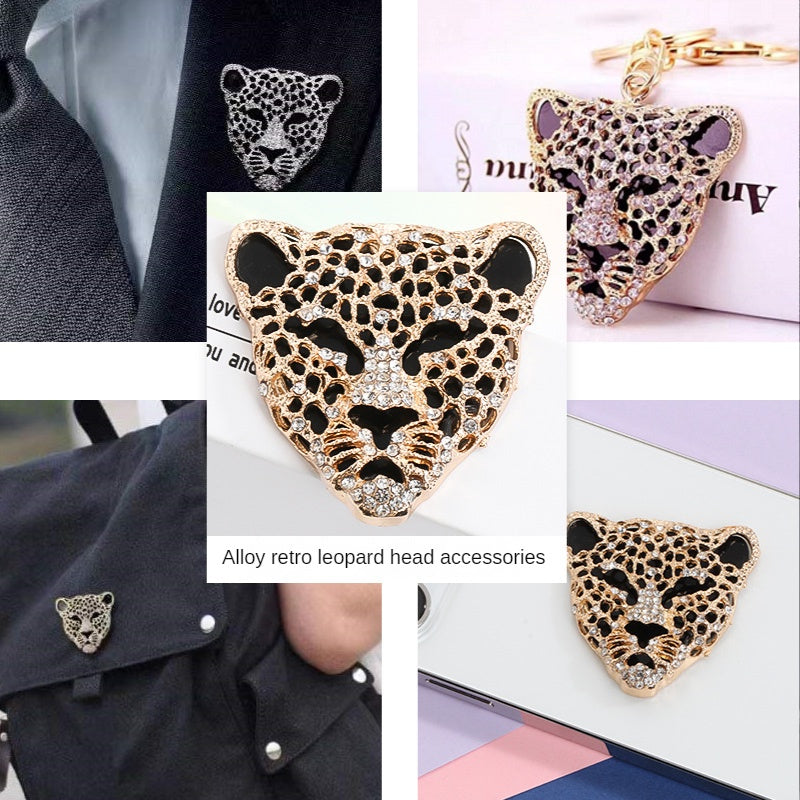 Leopard Head Full Drill Handmade Diy Mobile Phone Case Hand Car Air Outlet Tissue Box Decorative Ornaments Accessories Shoe Clothing
