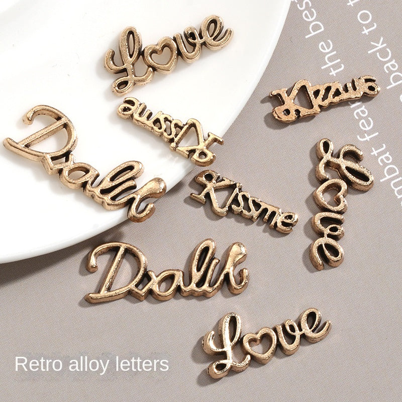 Diy Alloy Letter Hair Accessories Alloy Accessories Retro Alloy Letter Cream Glue Accessories Diy Phone Case Hair Clip Material Pack