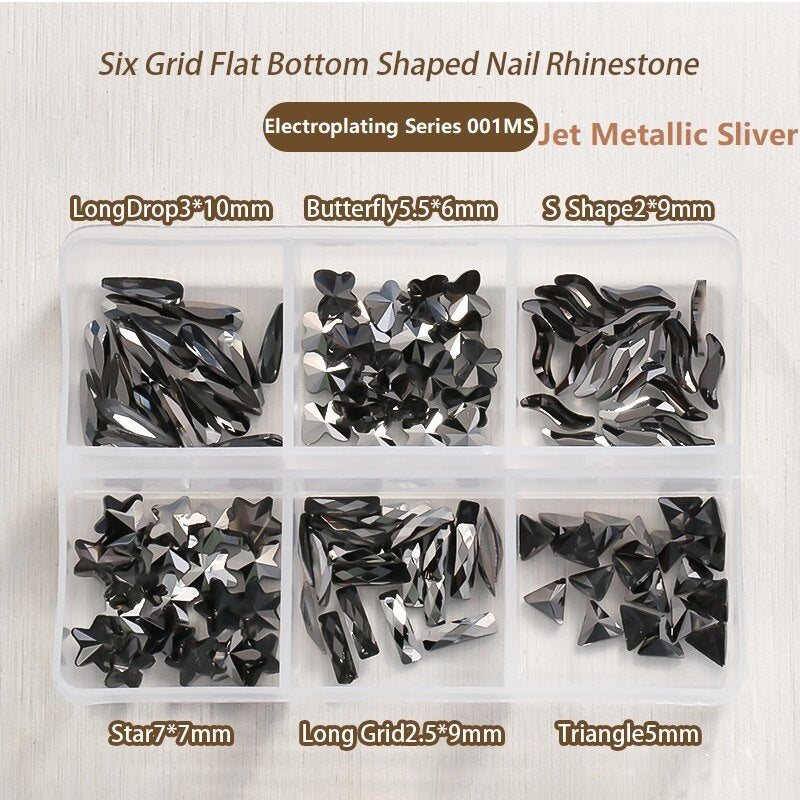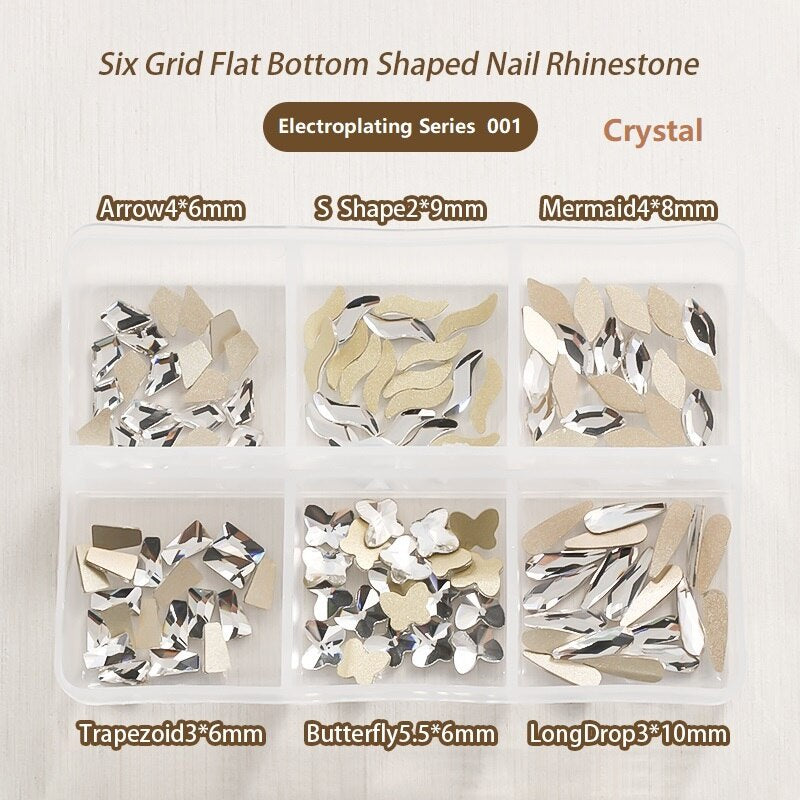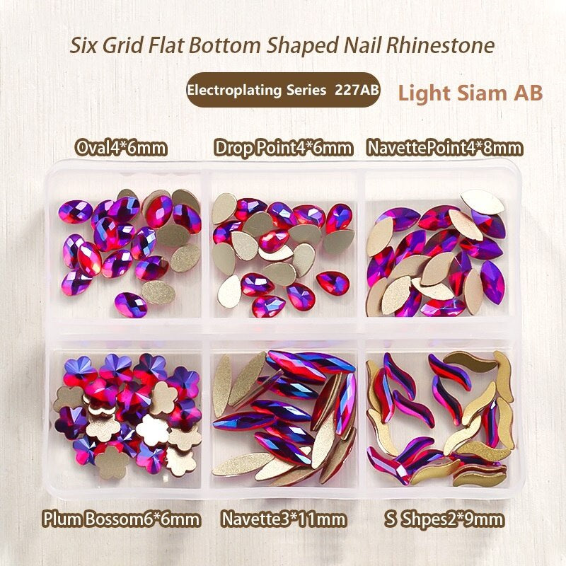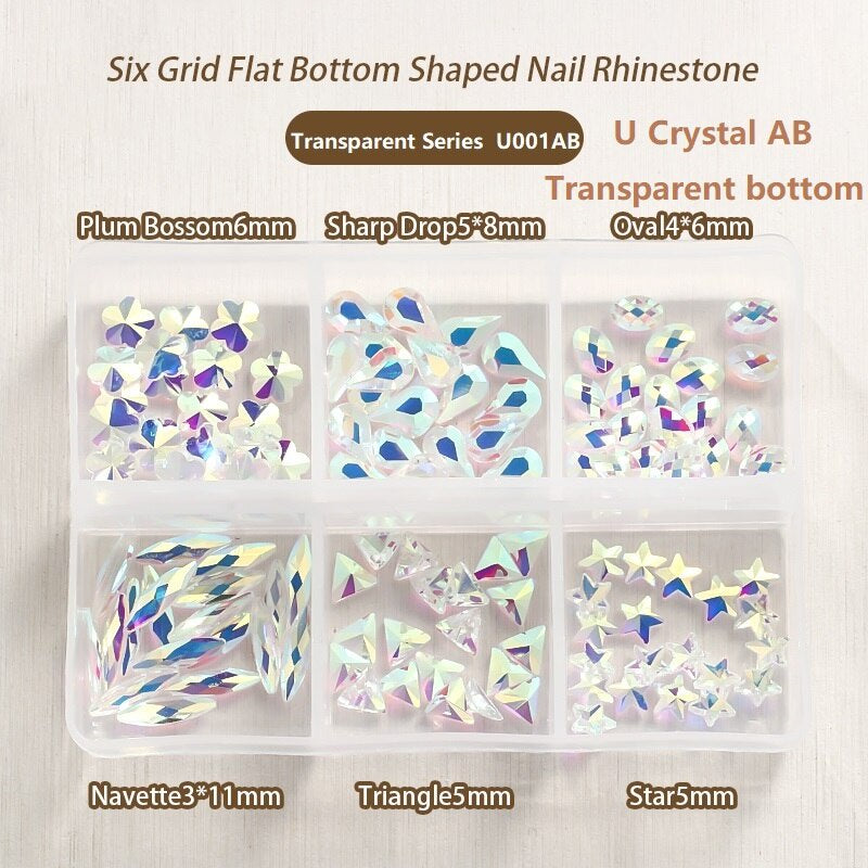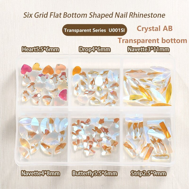 TonyBead 6Grid Blingbox Rhinestones On Nails Stone Set All Shaped Hybrid Manicure Jewelry Nail Glitter Kawaii Charm DIY Japanese Nail Art,kuku