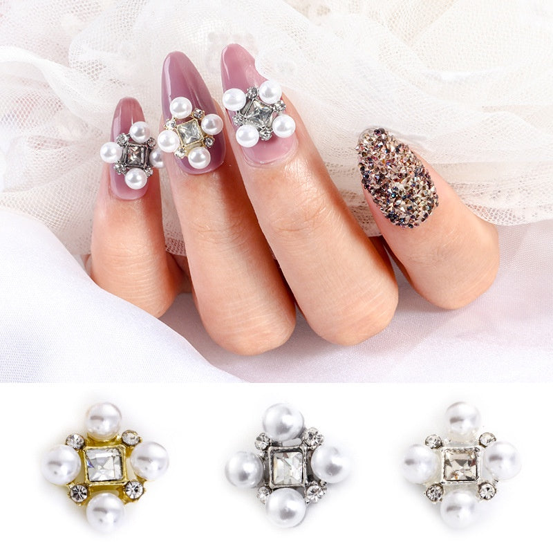 New Designs Ppearl Nail Art Salon Supplies Zircon Diy 3d Metal Alloy Nail Art Charms Stickers